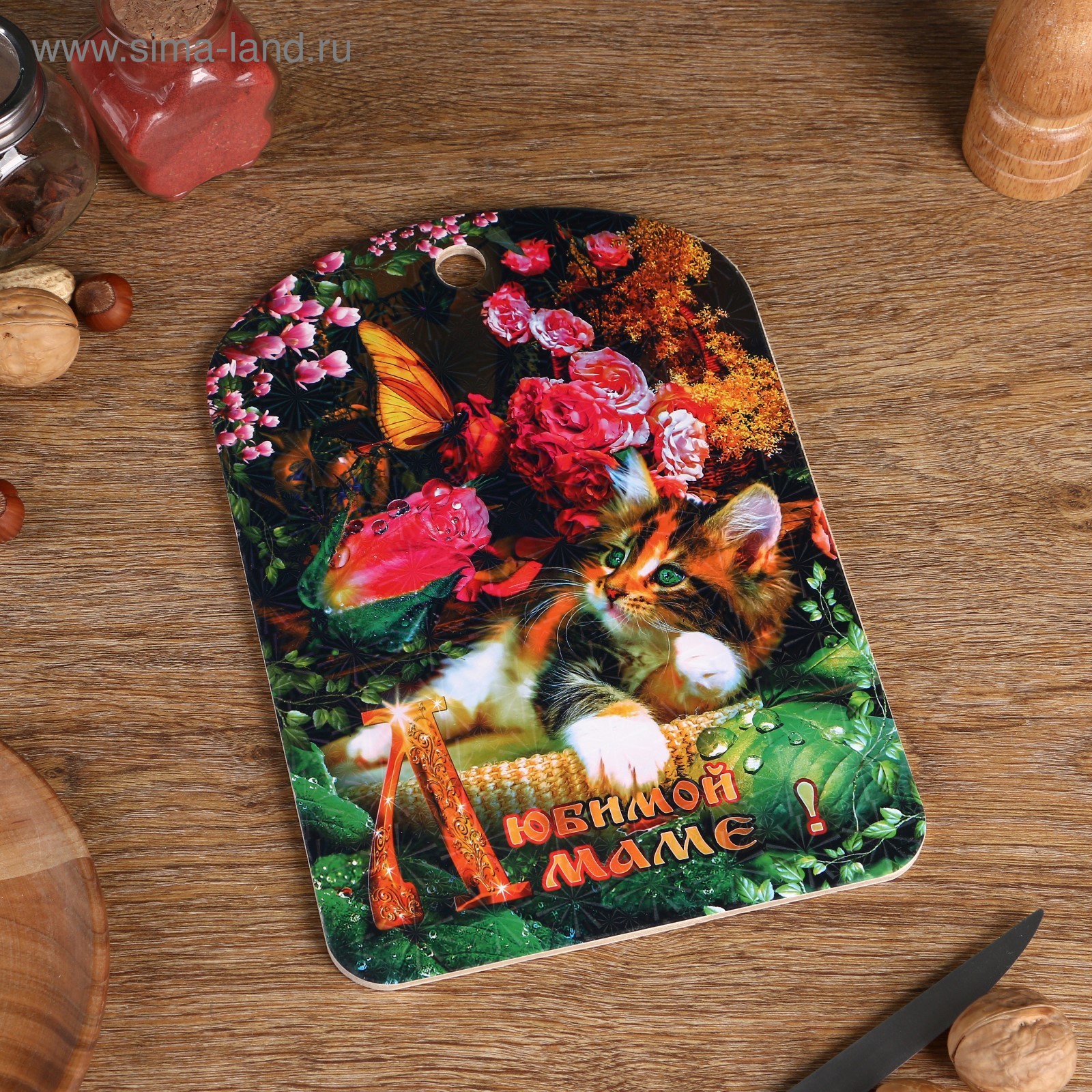 Доска разделочная большая "любимой маме", цветы, 19,5x27,5 см