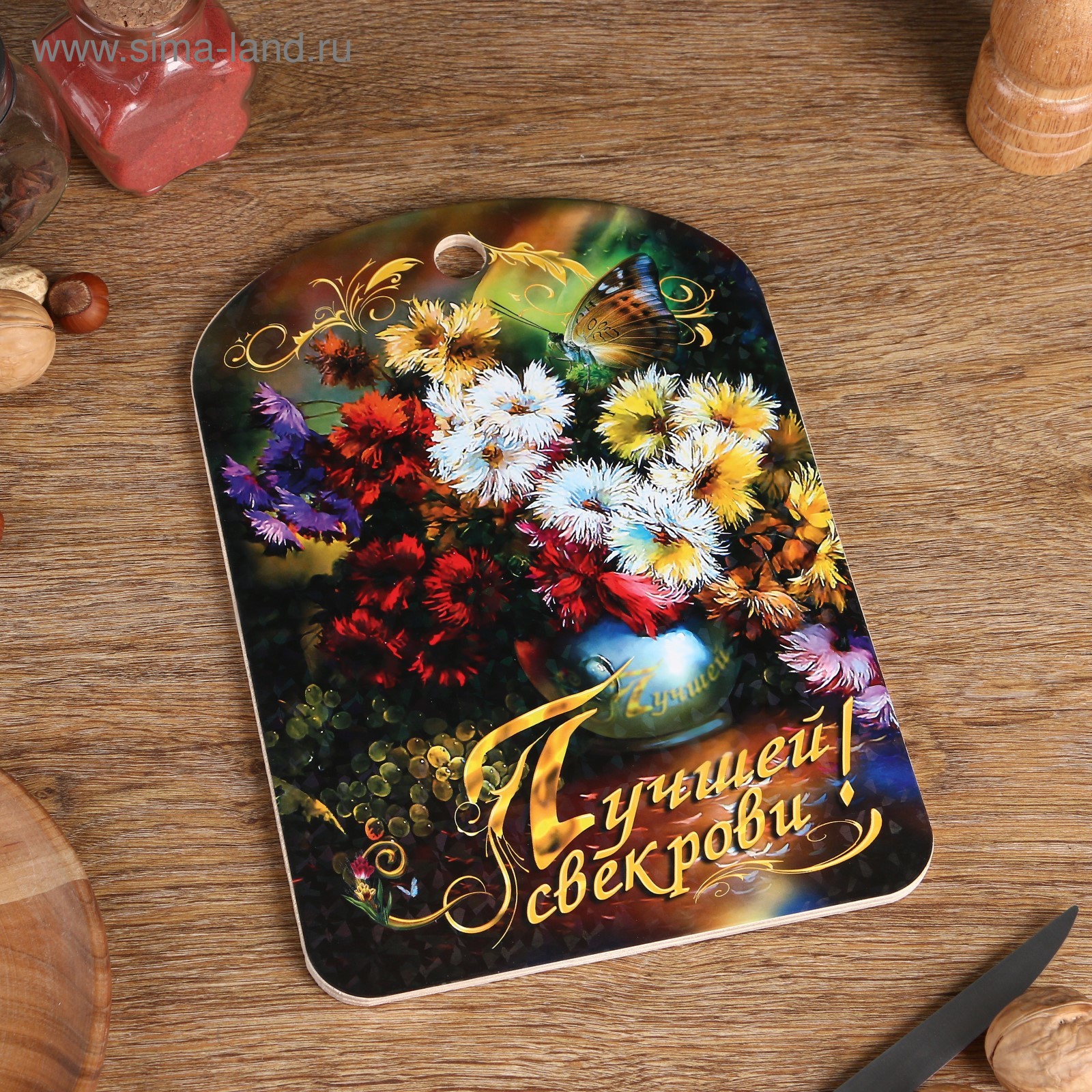 Доска разделочная большая "лучшей свекрови", цветы, 19,5x27,5 см