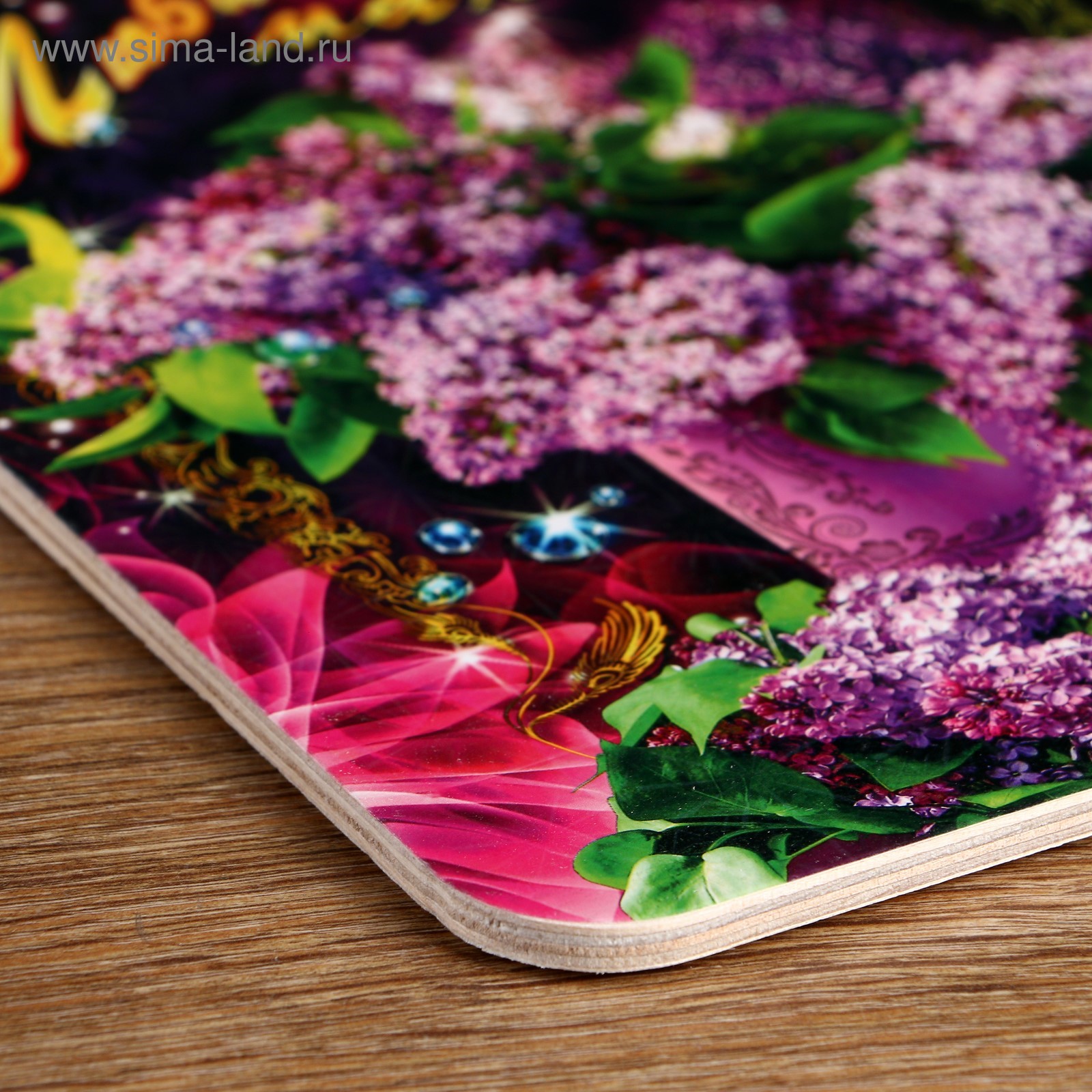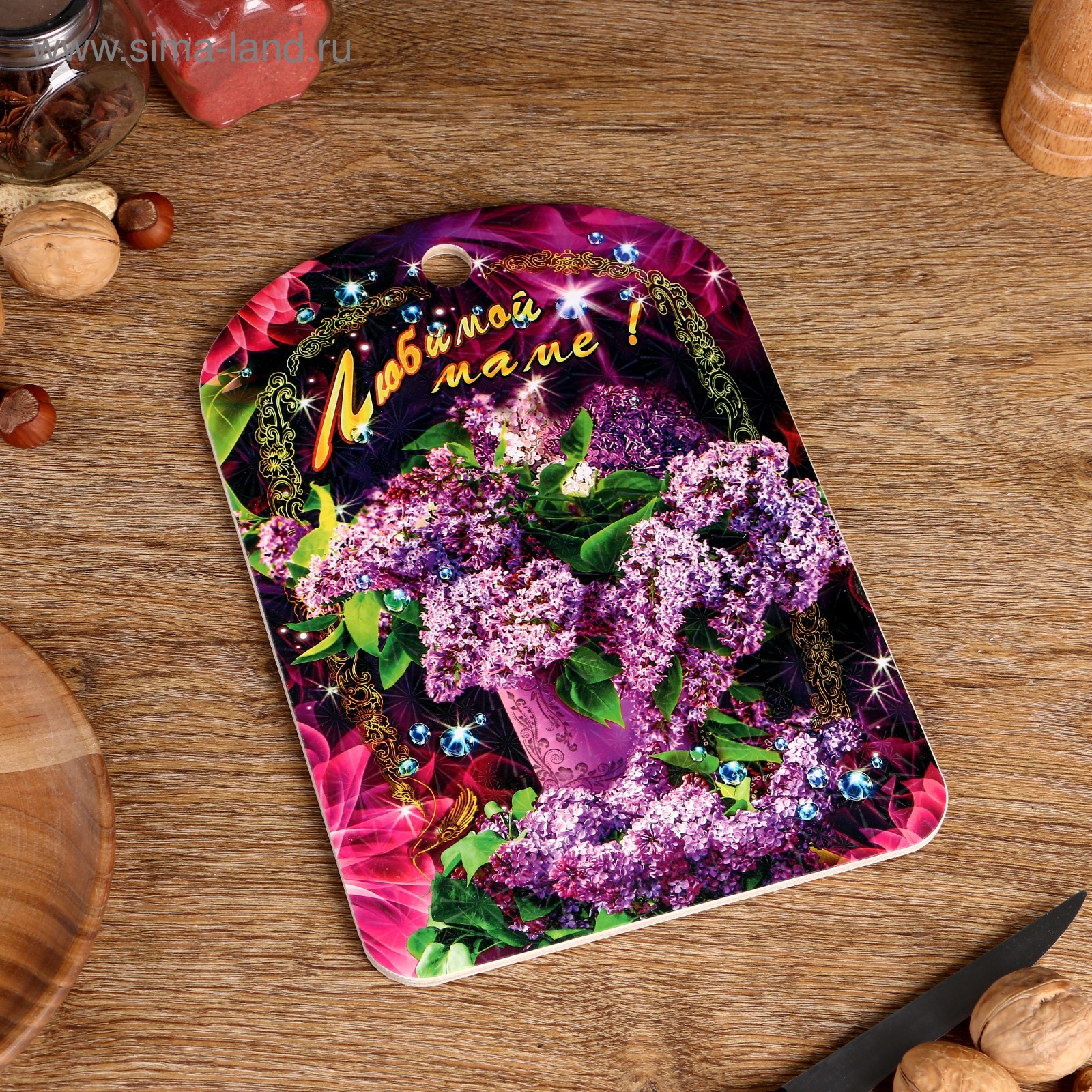 Доска разделочная большая "любимой маме" сирень", 19,5x27,5 см