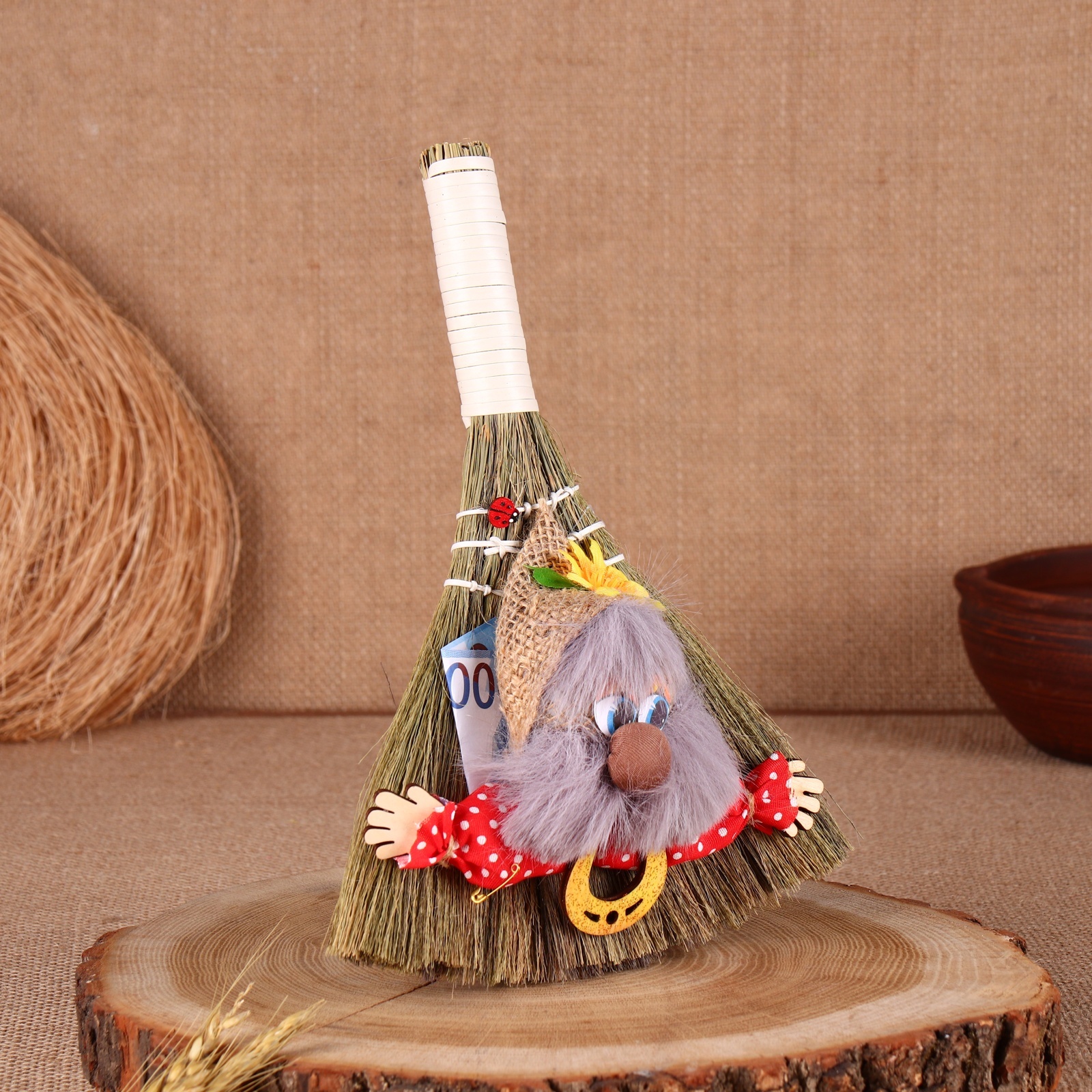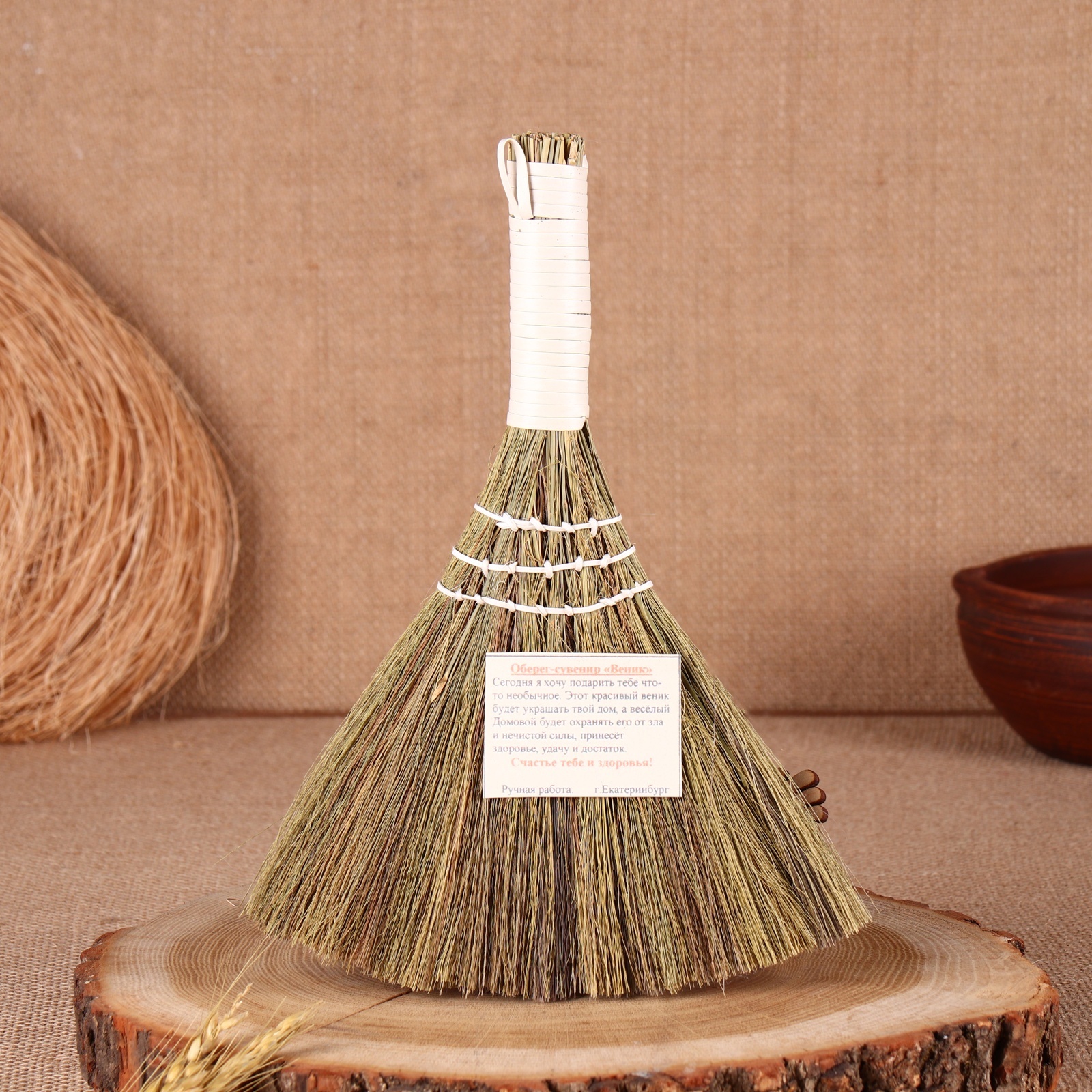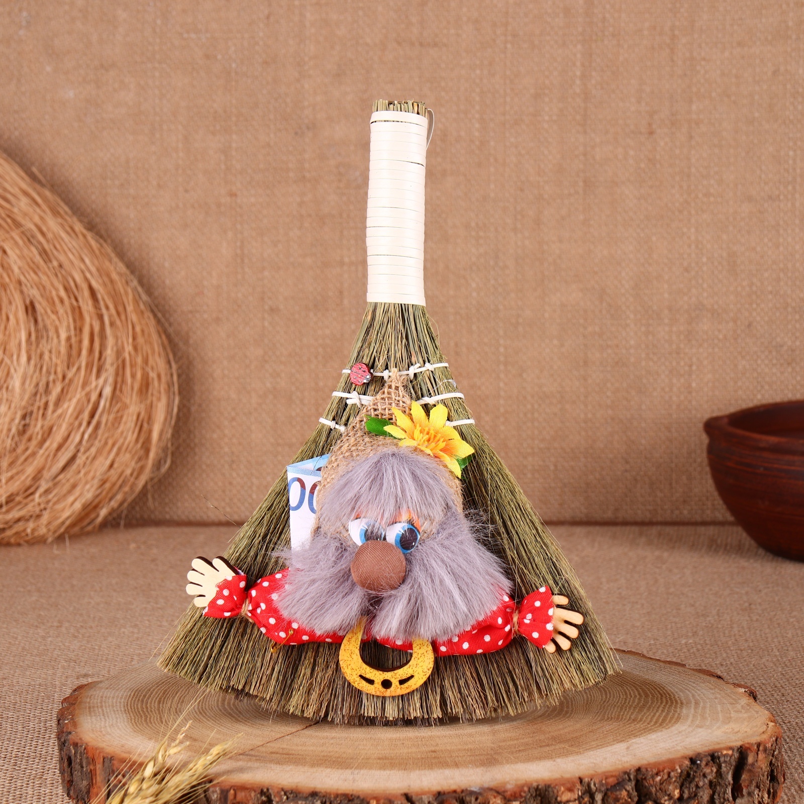 Оберег «домовушка», на венике, микс