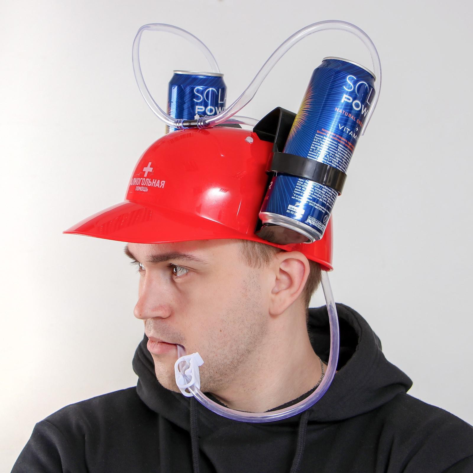 Каска «алкогольная помощь», с отверстиями под банки. Для тех, кто привык совмещать практичность, оригинальную идею и красоту исполнения в одном аксессуаре, мы разработали каску с отверстиями под банки. Теперь ваши руки свободны для более важных дел, а любимый напиток всегда рядом и в любой момент доставит вам удовольствие! Такая каска настоящая находка для тех, кто не хочет прятать свою индивидуальность за обычными скучными вещами. Оригинальная меткая надпись, дополненная подходящим рисунком, непременно обратит внимание публики на вас и вызовет и интерес окружающих. А каким замечательным подарком может стать такая полезная вещь! Ваш презент будет радовать своего получателя еще долгое время, а о вас будут вспоминать исключительно с теплой улыбкой. Дарите близким радость! Цвет:Красный|Для кого:Унисекс|Материал:Пластик|Вид шляпы:Шлем (каска)|Тематика:Без тематики|Страна:Китай  развернуть описание ▼