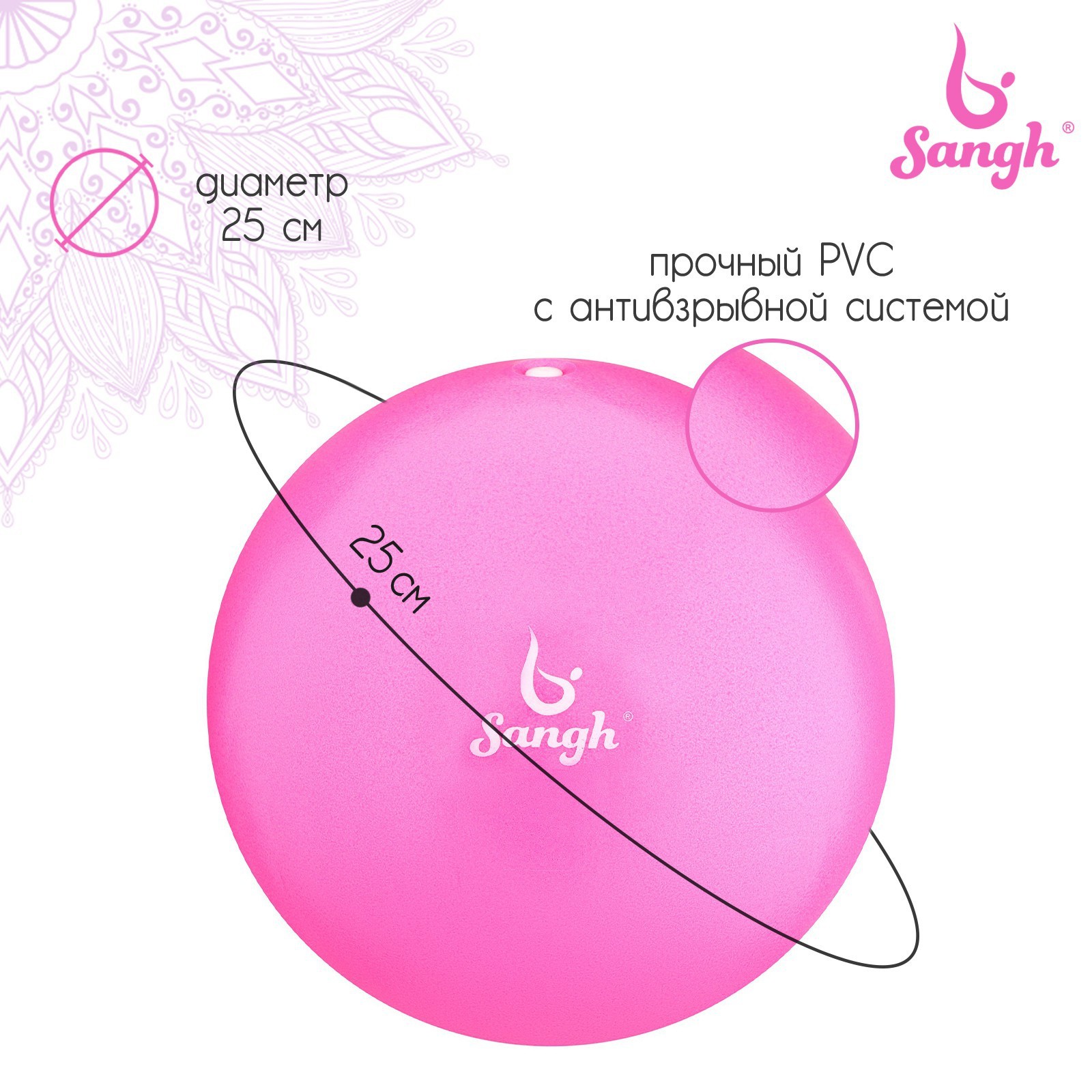 Мяч для йоги и пилатеса sangh, d=25 см, 100 г, цвет розовый. Мяч для йоги разнообразит вашу тренировку и повысит эффективность упражнений. Используйте его для медитации, силовых нагрузок или игры. С ним вы прокачаете больше мышц, чем на тренировках без спортинвентаря. Небольшой лёгкий мяч не создаст высокой нагрузки на позвоночник и не вызовет перенапряжения организма. Цвет: Розовый Материал: ПВХ Вид: Мячи  развернуть описание ▼