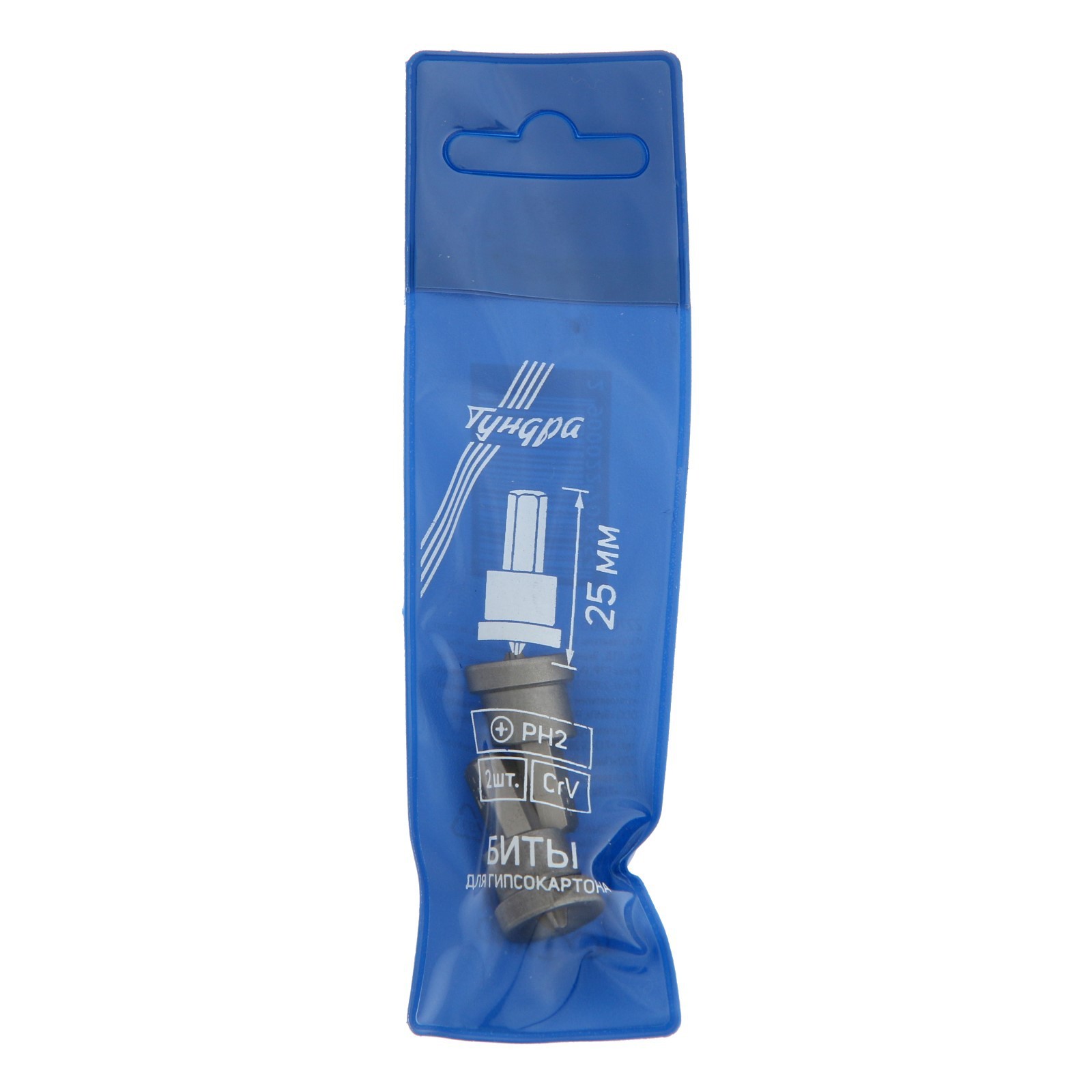 Биты для гипсокартона тундра, сталь Crv, Ph2 х 25 мм, 2 шт.