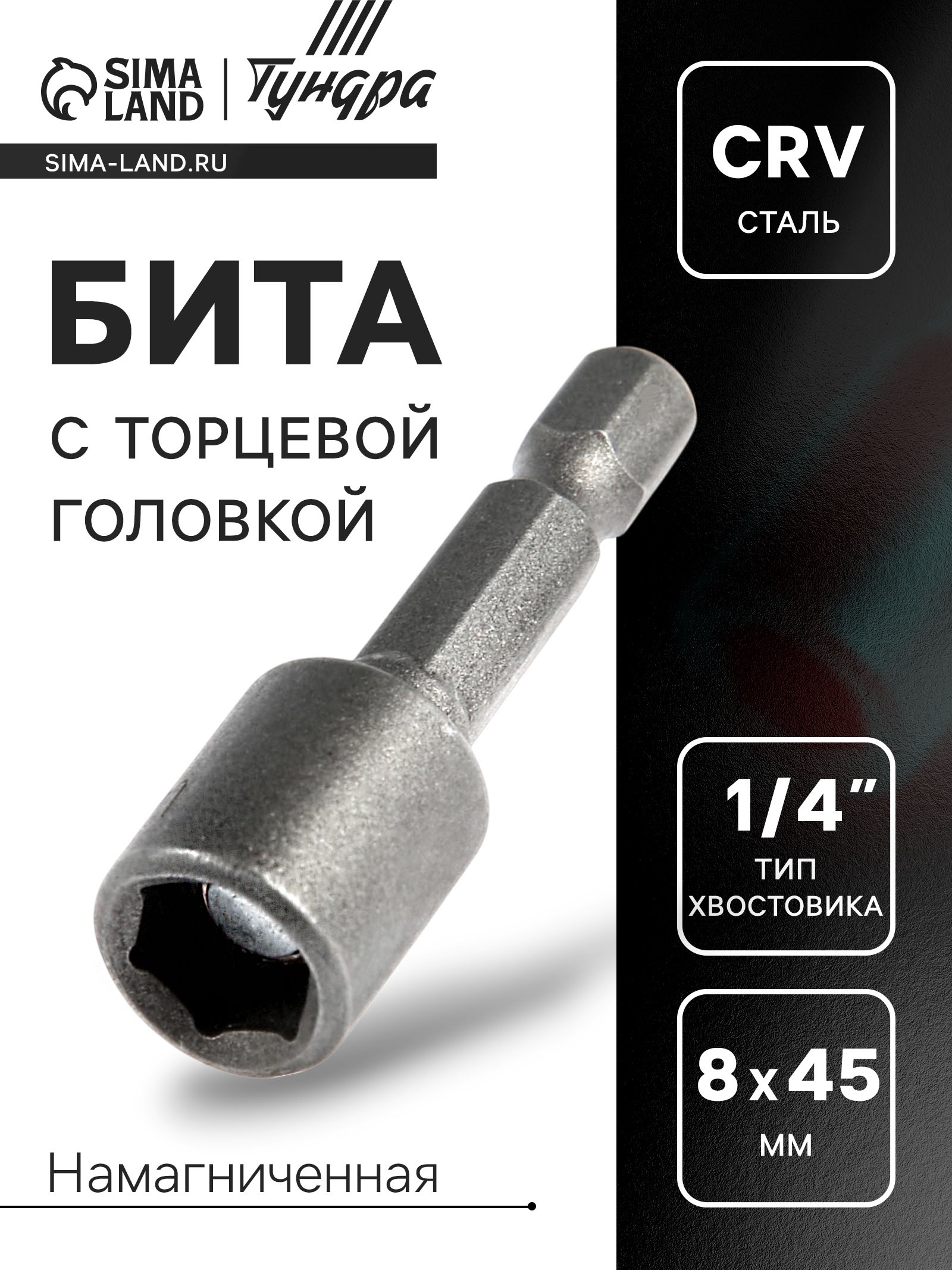Бита с торцевой головкой тундра, сталь Crv, магнит, 8 х 45 мм