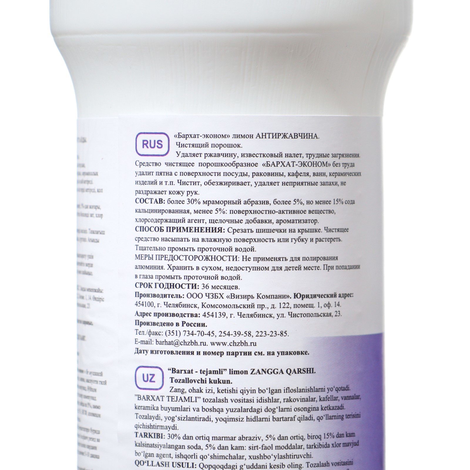 Чистящий порошок "бархат-эконом антиржавчина" с хлором, лимон, 400 г