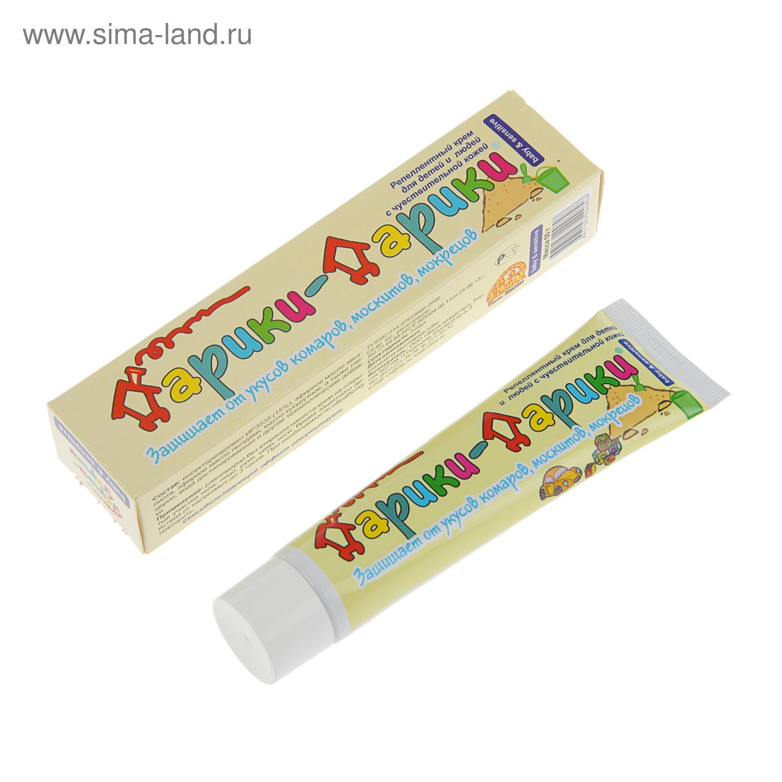 Крем репеллентный от укусов комаров "дарики-дарики", детский, 50 г. Защищает от укусов комаров, москитов и мокрецов! В качестве действующего вещества содержит субстанцию «IR3535», производимую немецкой фирмой «MERK». Это вещество (практически единственное в мире) обладает отличными репеллентными свойствами и самой низкой токсичностью для кожи. Дело в том, что оно практически не впитывается кожей, а в течение всего времени находится только на ее поверхности. Препараты, сделанные на его основе, разрешены даже для детей от одного года! Раньше при разработке детского репеллентного крема производители никак не могли решить проблему противоречия между эффективностью и безопасностью продукта. Хорошо отпугивающие насекомых крема были небезопасны для детей, а те препараты, которые рекомендовались для малышей, обладали, увы, лишь слабым репеллентным действием. Крем «Дарики-Дарики» — это уникальное сочетание мягкой, безопасной для детей формулы и высокой эффективности. Он защищает детей и подростков от укусов насекомых не менее трех часов после нанесения на кожу! При этом он не раздражает кожу и не вредит здоровью малыша. Состав: инсекторепеллент ИР3535 (15%), эфирное масло эвкалипта, эфирное масло гвоздики, масло кукурузное, а также глицерин, вода дистилированная и другие технологические добавки. Срок годности: 3 года. Вид средства: Крем Назначение: От комаров Тип средства: Репеллент  развернуть описание ▼