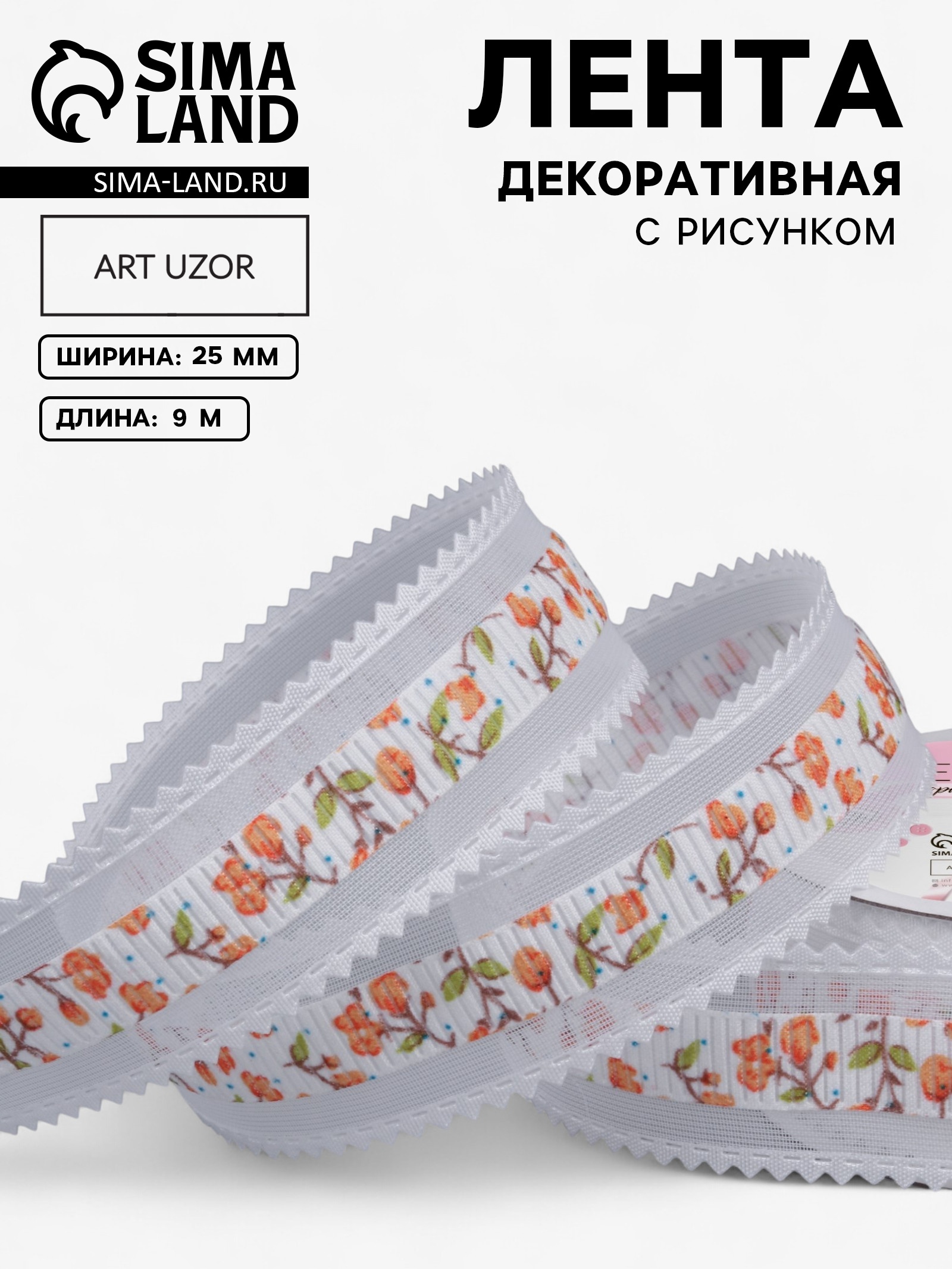 Лента декоративная «розы», 25 мм, 9±0.5 м, белая №10