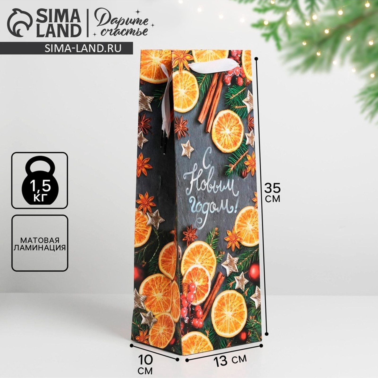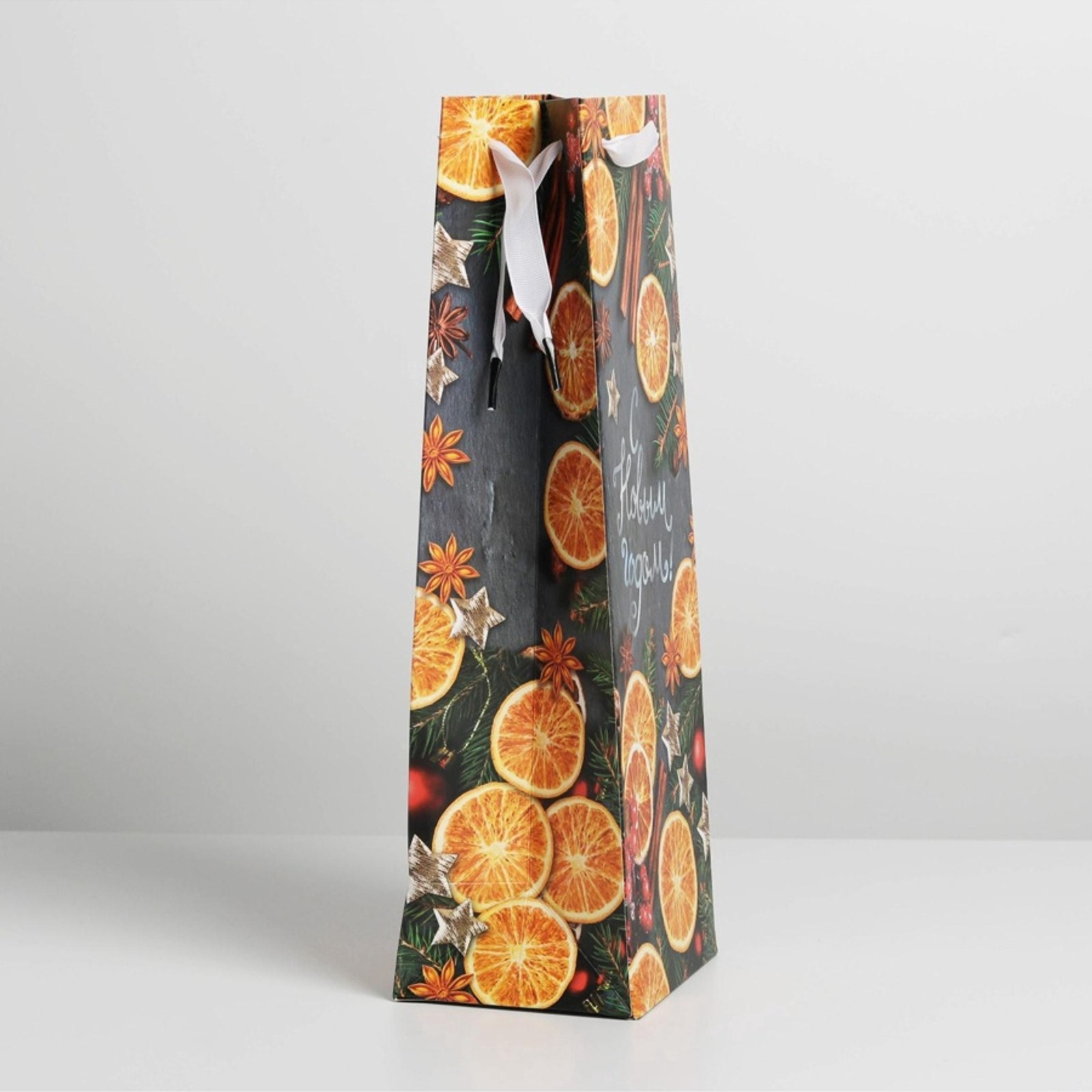 Пакет подарочный новогодний ламинированный под бутылку «уюта и тепла в новом году», 13 х 35 х 10 см