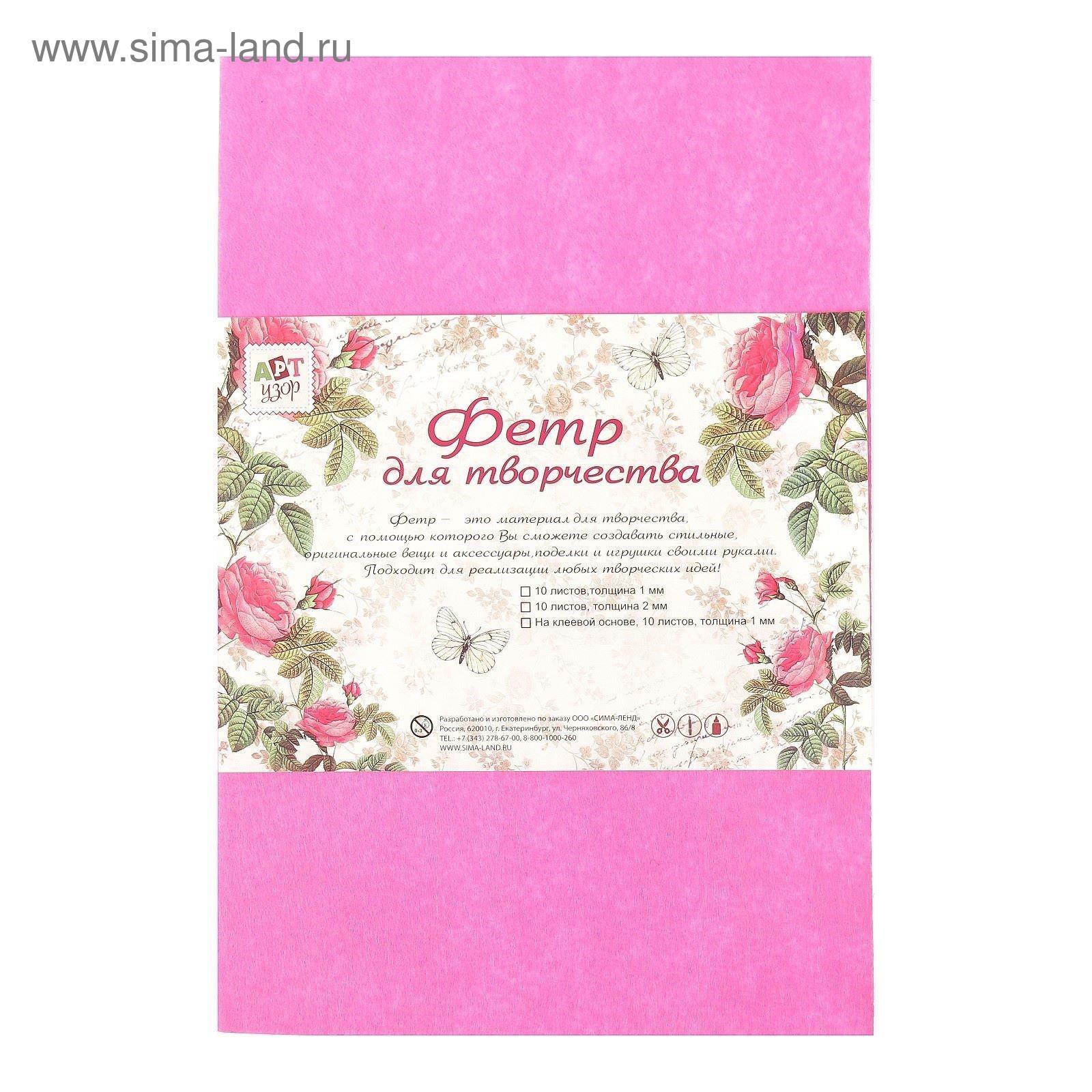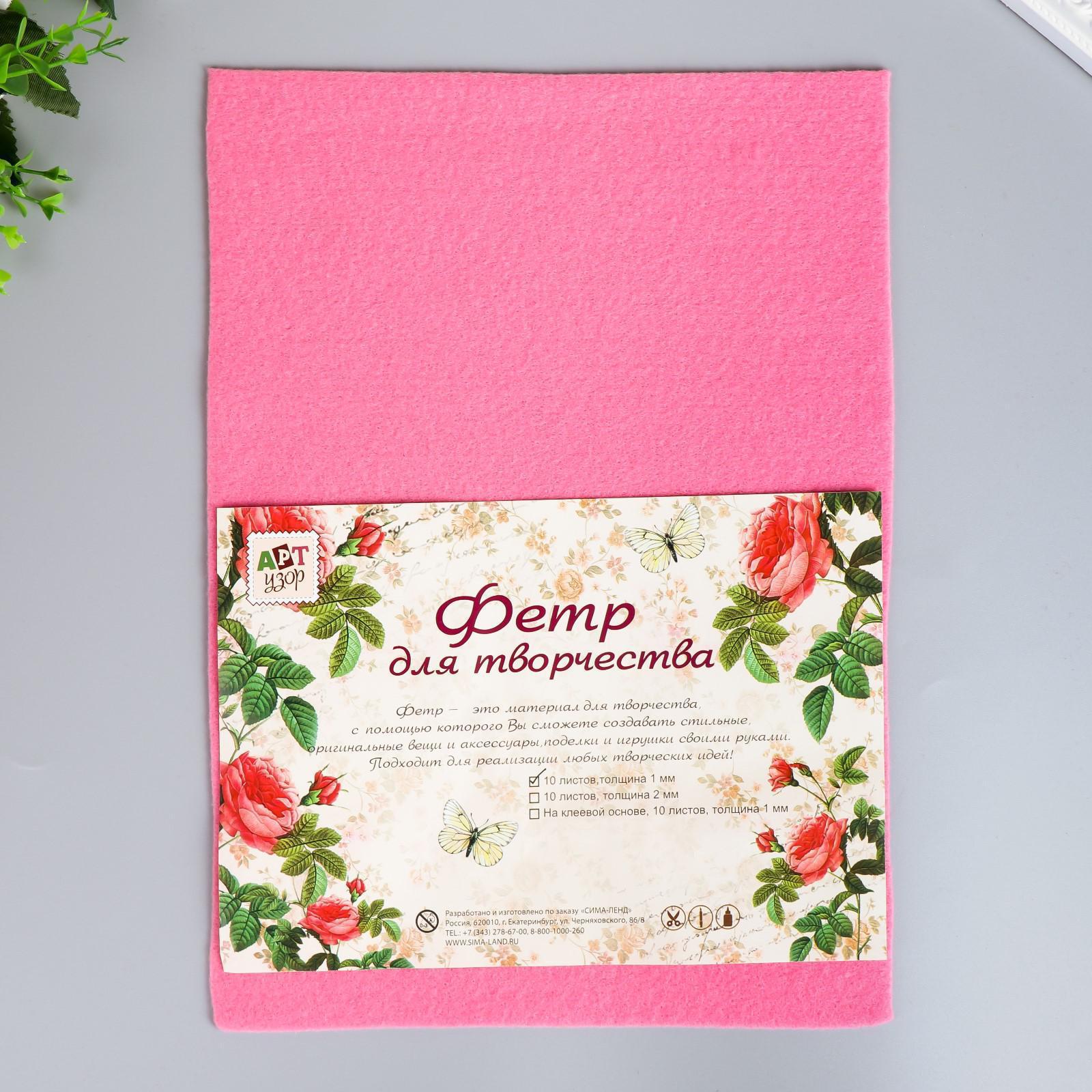 Фетр «ярко-розовый», 1 мм, (набор 10 листов), формат а4