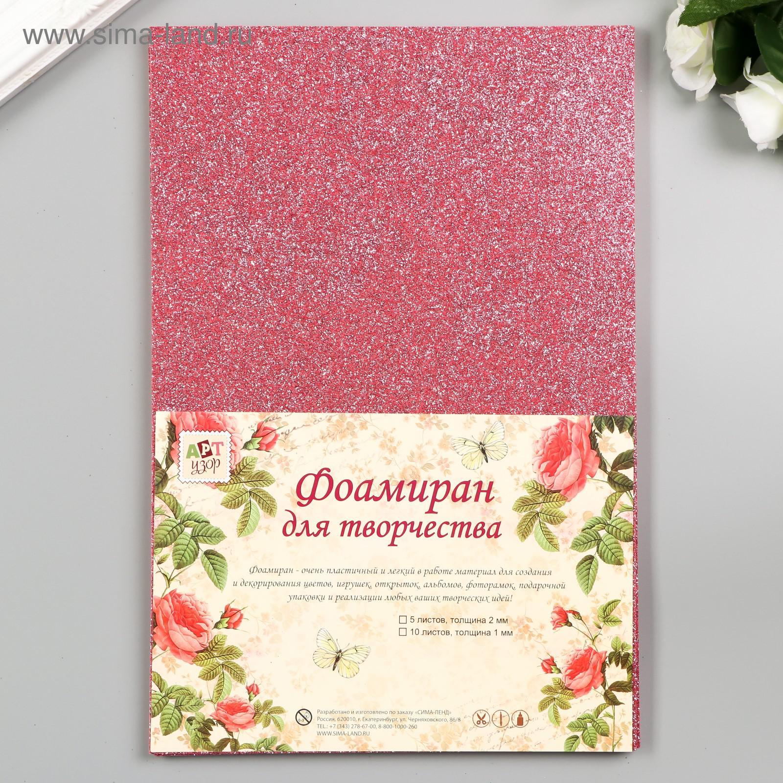 Фоамиран «светло-розовый блеск», 2 мм, формат а4, (набор 5 листов). Набор:Да|Количество цветов:1|Цвет:Розовый|Формат:А4|Толщина, мм:2|Количество листов:5|Особенность:С блестками|Тип:Фоамиран (пенка/резина)|Страна:Китай