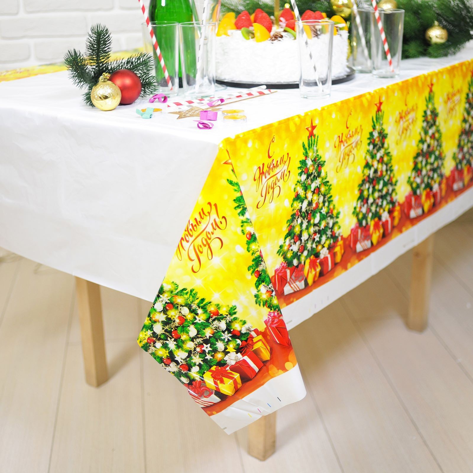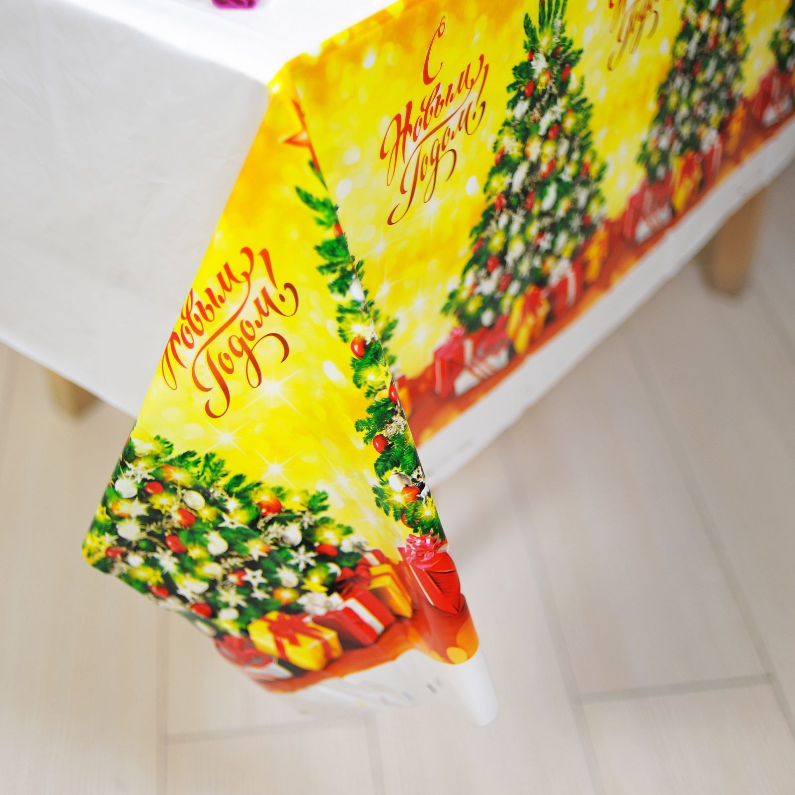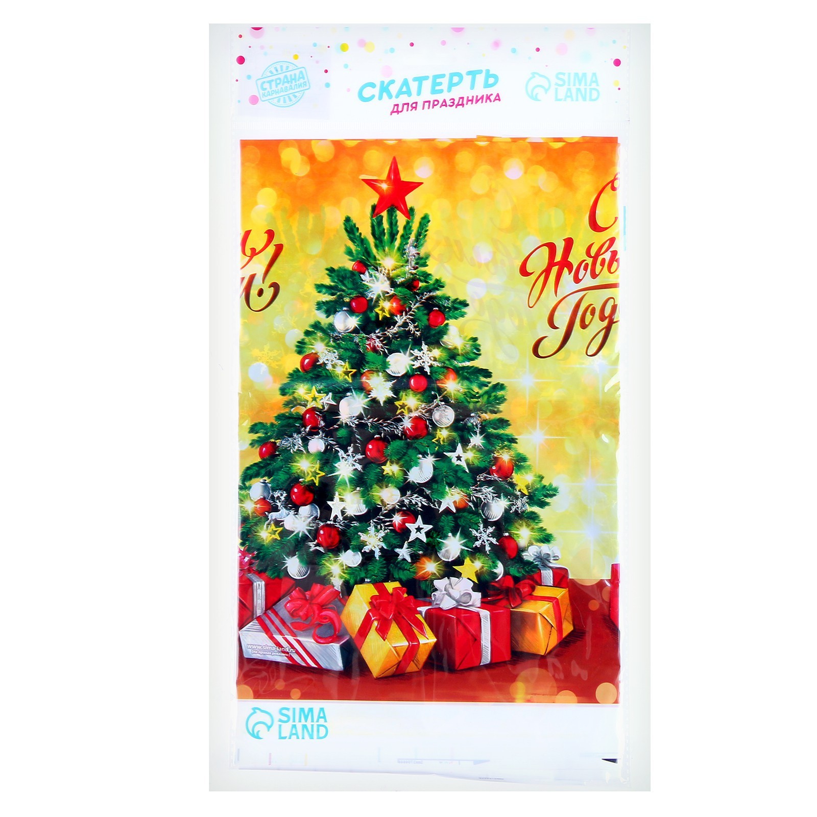 Новогодняя скатерть одноразовая «с новым годом», ёлочка, 180 х 137см.