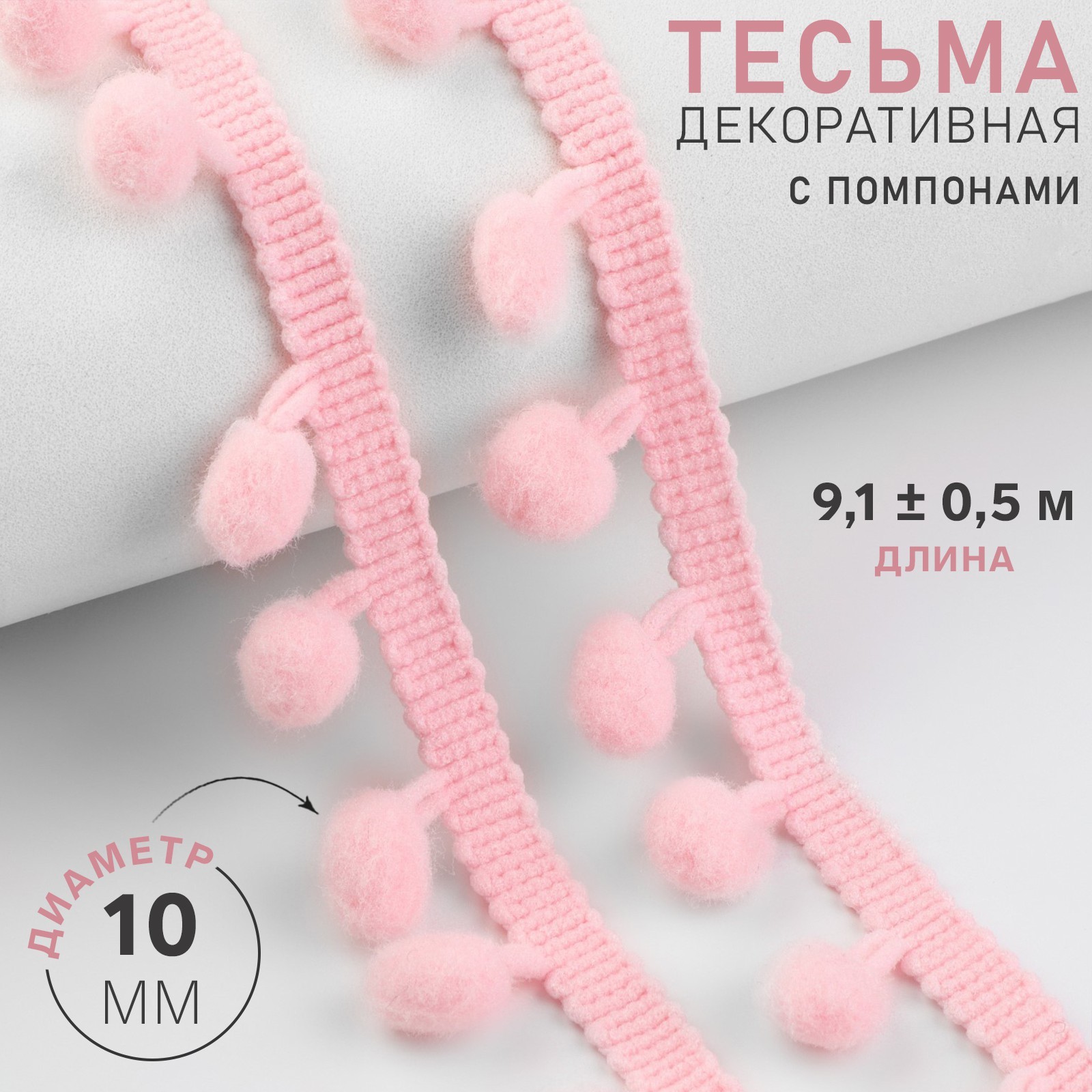 Тесьма декоративная с помпонами, 25±5 мм, 9.1±0.5 м, розовая