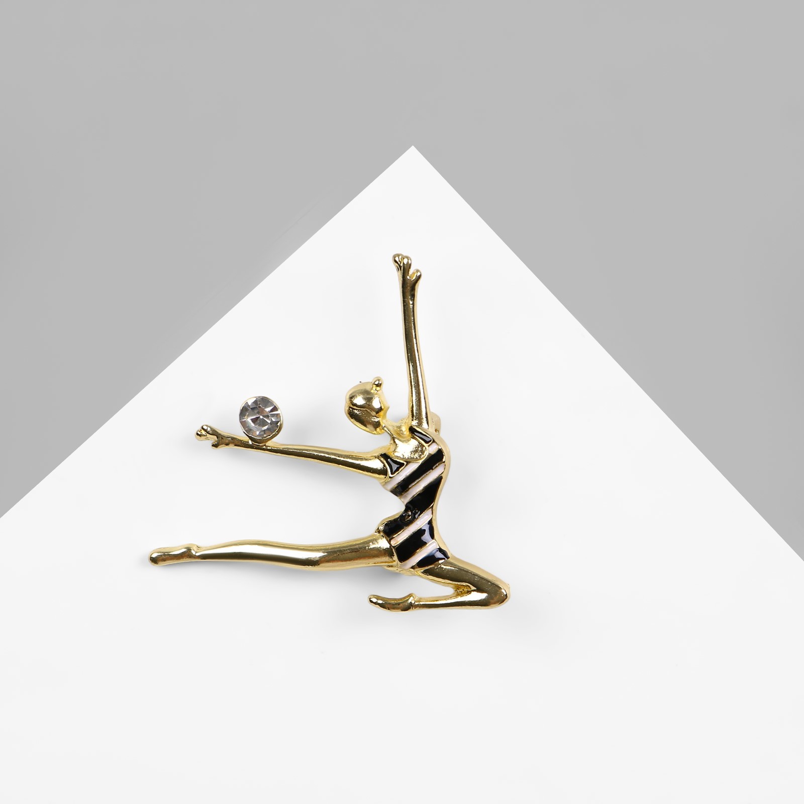 Брошь «гимнастка с мячом», цвет чёрно-белый в золоте. Брошь — универсальное и практичное украшение, которое может подчеркнуть даже самый простой образ. Наиболее яркое впечатление на нас оказывают маленькие, но эффектные детали. Дополните свой наряд запоминающейся брошью, чтобы придать образу еще большего очарования. Изделие не соприкасается с кожей и не может вызвать аллергических реакций. Подобное украшение удобно дарить, ведь не нужно знать параметры будущего обладателя. Цвет: Белый Цвет: Чёрный Длина, см: 4.5 Коллекция: Жемчуг Материал: Металл Вид спорта: Гимнастика Цвет фурнитуры: Золотой Вид: Брошь Вставка: Жемчуг Вставка: Пластик Вставка: Эмаль Ручная работа: Нет Материал основания: Металл Материал основы: Металл Тематика: Балерины, гимнастки Бижутерия с открыткой: Да Вид: Броши  развернуть описание ▼