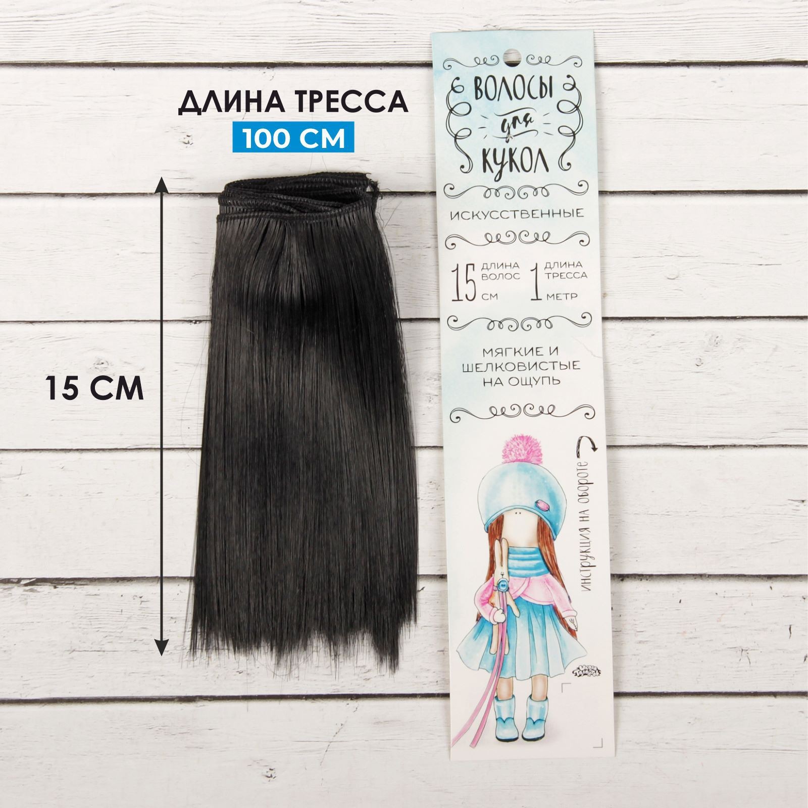 Волосы - тресс для кукол «прямые» длина волос: 15 см, ширина: 100 см, цвет № 1