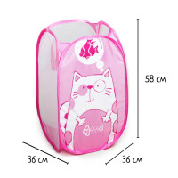 Корзина для игрушек «котик». Данная корзина предназначена для хранения игрушек и других важных вещей малыша. Она поможет поддерживать чистоту в доме и приучить ребёнка к порядку. Отсутствие острых углов, прочные и лёгкие материалы делают предмет незаменимым в детской комнате. Благодаря сетке хорошо видно содержимое, а безопасный металлический каркас не деформируется при использовании. Такая корзина пригодится в поездках: в ней будет удобно собрать любимые игрушки, с которыми чадо не может расстаться ни на минуту. Она компактна, но вместит всё необходимое, и вещи не рассыплются в дороге. Если изделие стало ненужно, его можно сложить, так оно займёт совсем немного места. Цвет: Розовый Для кого: Для девочки Форма: Прямоугольная Ширина, см: 36 Высота, см: 58 Глубина, см: 58 Тематика: Животный мир Крышка: Нет Материал: Текстиль Животное восточного календаря: Кот Основной материал: Текстиль Форма: Прямоугольник  развернуть описание ▼