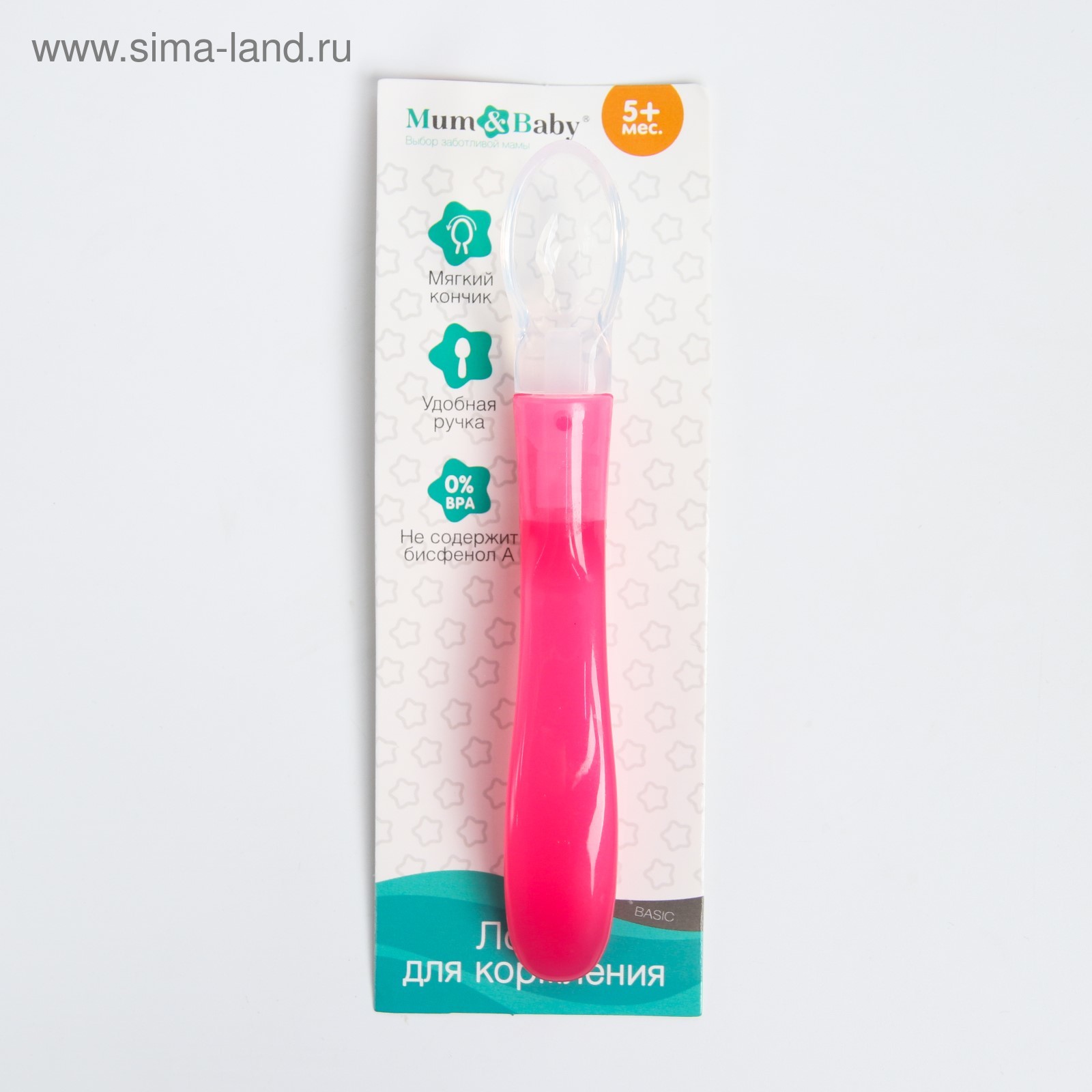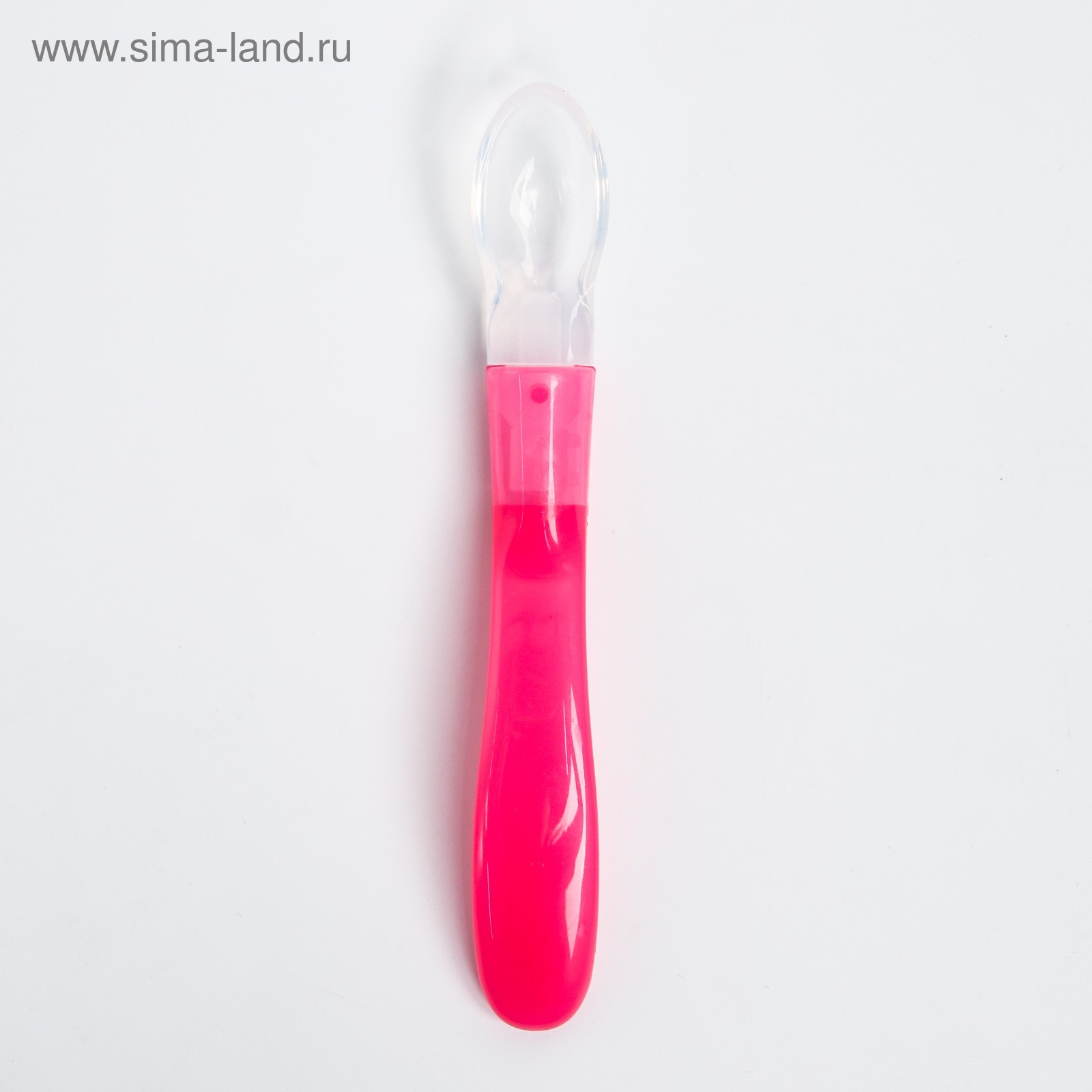 Ложка детская для кормления силиконовая, от 5 мес., цвет розовый