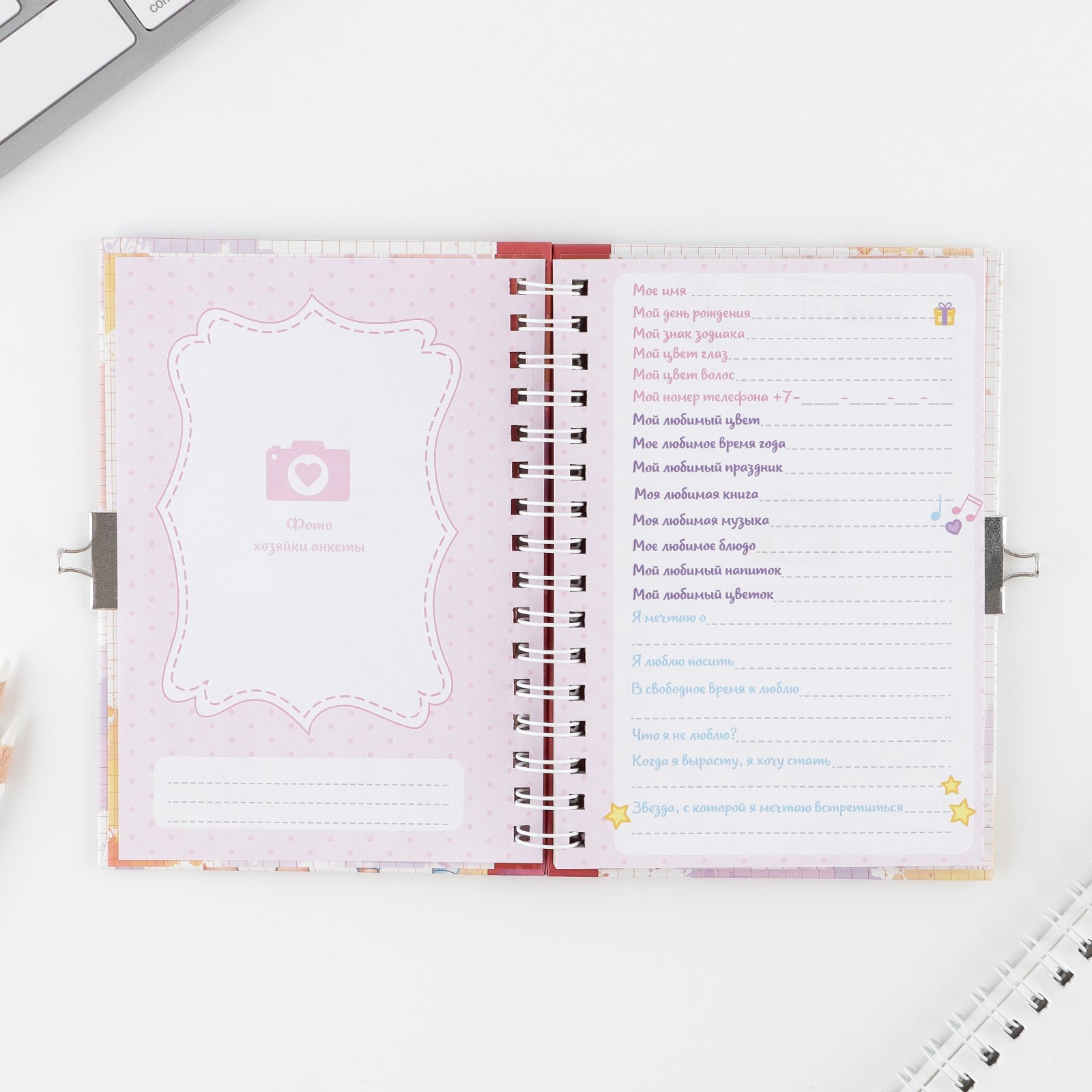 Анкета на замочке, в твердой обложке а6, 40 листов «мои школьные друзья». Для кого:Для девочки|Формат:А6|Тип скрепления:На гребне/спирали|Размер, см:10.5 х 14.8|Возраст:От 3 лет|Количество листов:40|Количество страниц:80|Материал обложки:Картон 7БЦ|Тематика праздника:8 Марта|Материал:Бумага|Материал:Картон 7БЦ|Материал:Металл|Материал:Пластик|Особенности:На замочке|Особенности:Дизайнерский блок|Вид обложки:Твёрдая|Страна:Китай  развернуть описание ▼