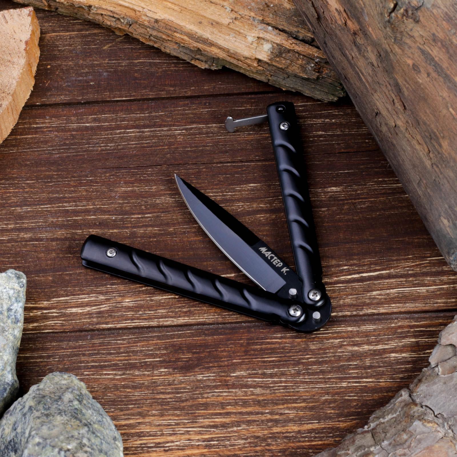 Нож-бабочка "калиго" 16,6см, клинок 76мм/1мм 2461184. Длина лезвия, см: 7 Твёрдость лезвия, HRC: 53 Материал ручки: Металл Фиксатор: Нет Сталь: 3CR13 Тип ножа: Нож-бабочка  развернуть описание ▼