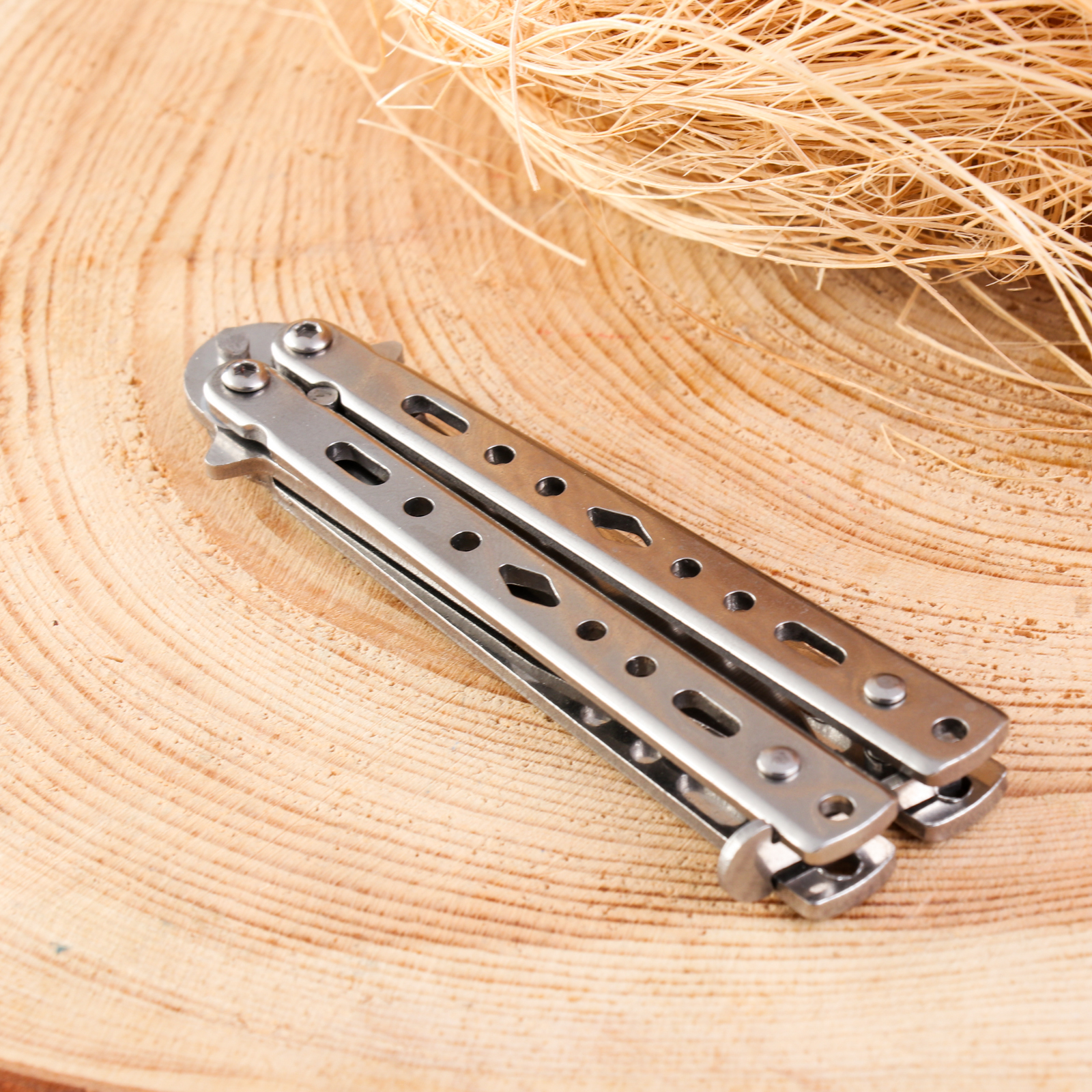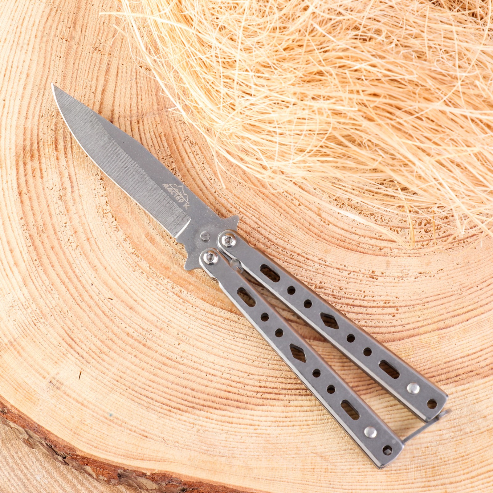 Нож-бабочка "аргус" 17см, клинок 69мм/1мм, серебристый. Длина лезвия, см: 7.5 Твёрдость лезвия, HRC: 53 Материал ручки: Металл Фиксатор: Да Сталь: 3CR13 Тип ножа: Нож-бабочка  развернуть описание ▼