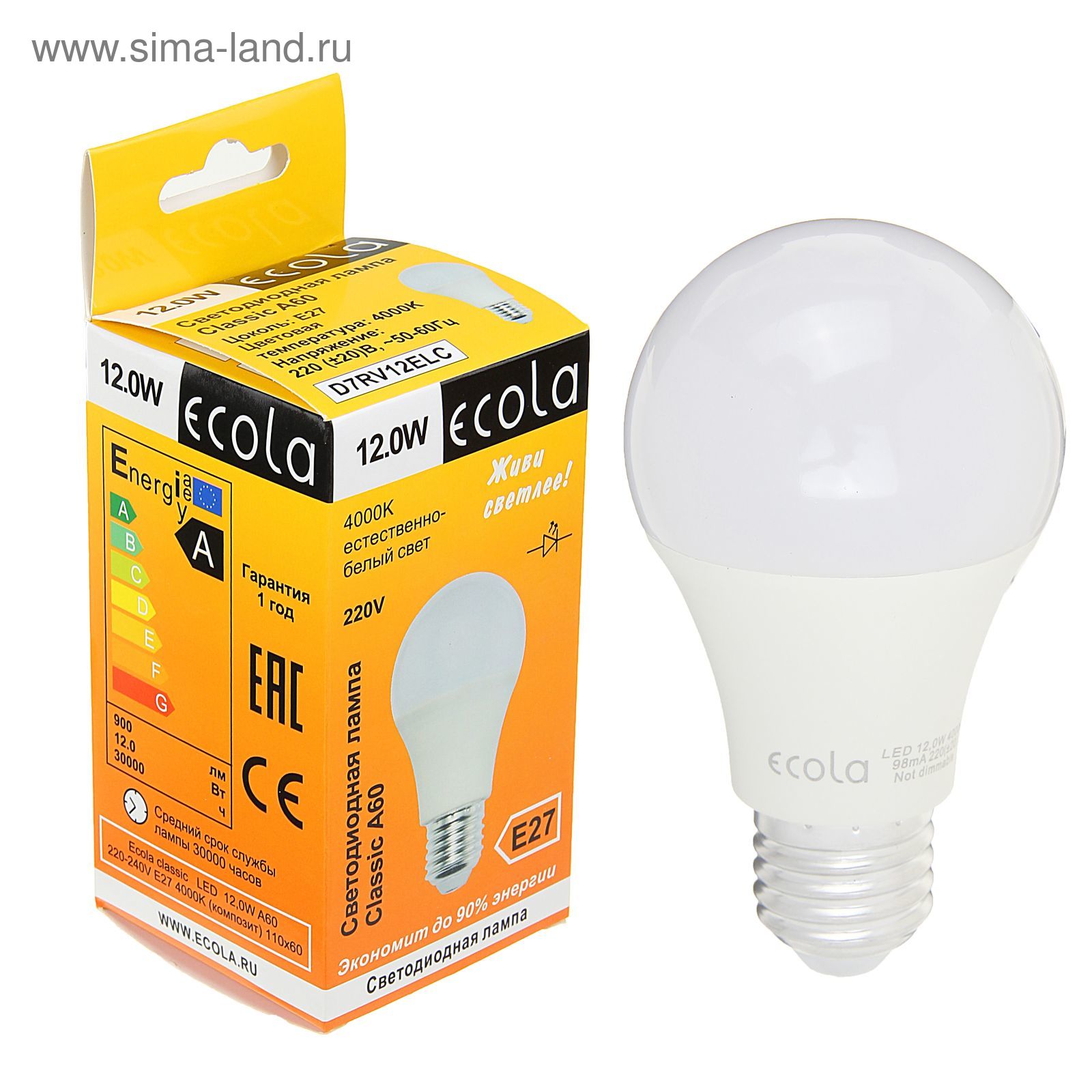Лампа светодиодная Ecola Classic, е27, а60, 12 вт, 4000 K, 110x60 мм