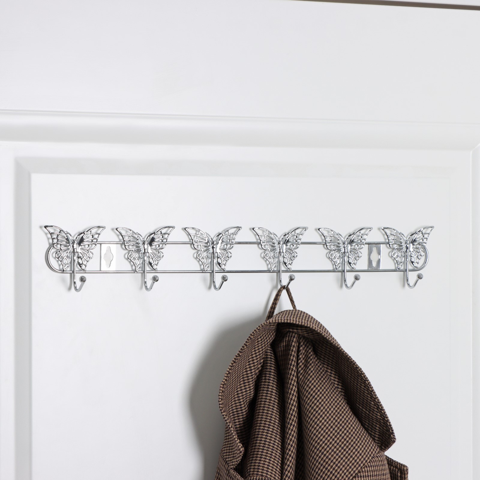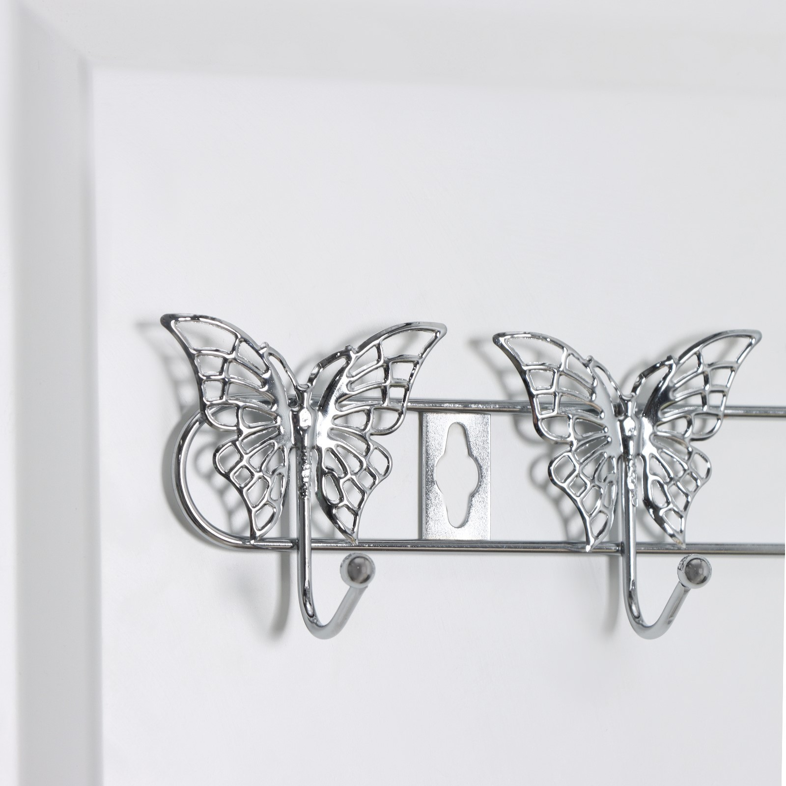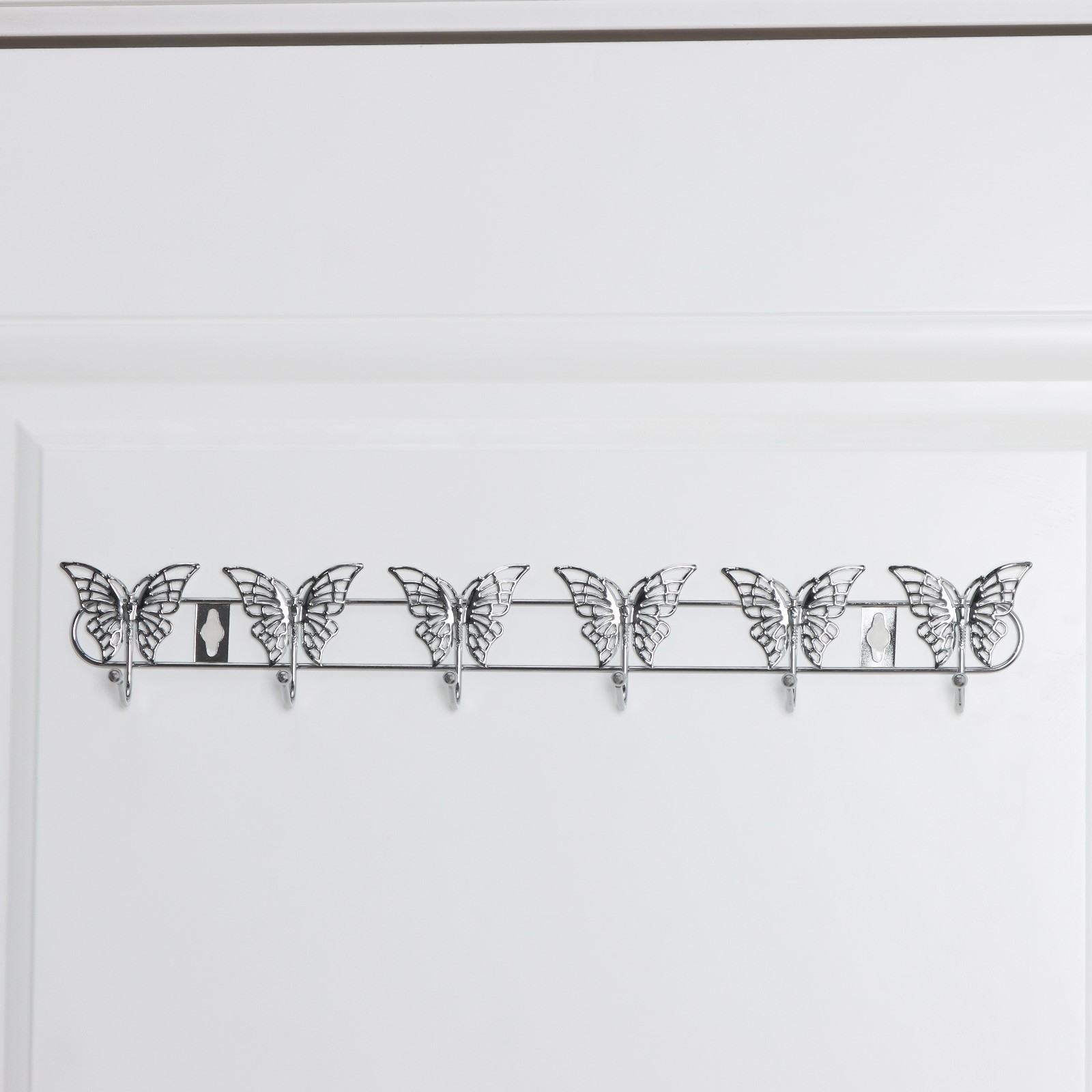 Вешалка настенная на 6 крючков доляна «бабочки», 34,5x3x6,5 см, цвет серебряный.