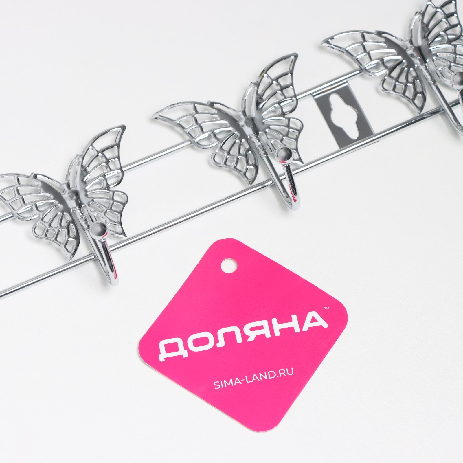 Вешалка настенная на 6 крючков доляна «бабочки», 34,5x3x6,5 см, цвет серебряный
