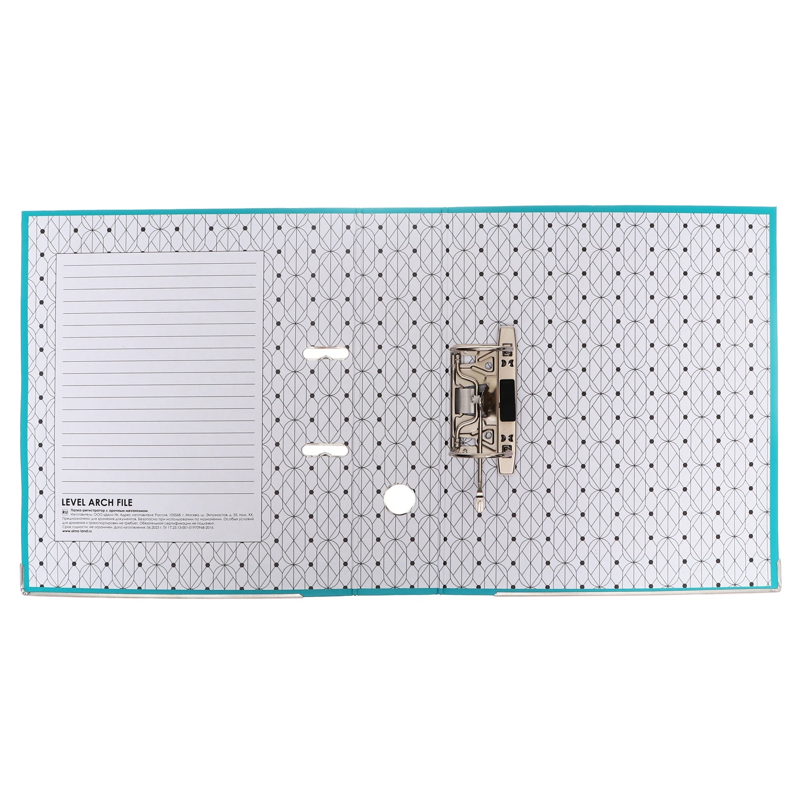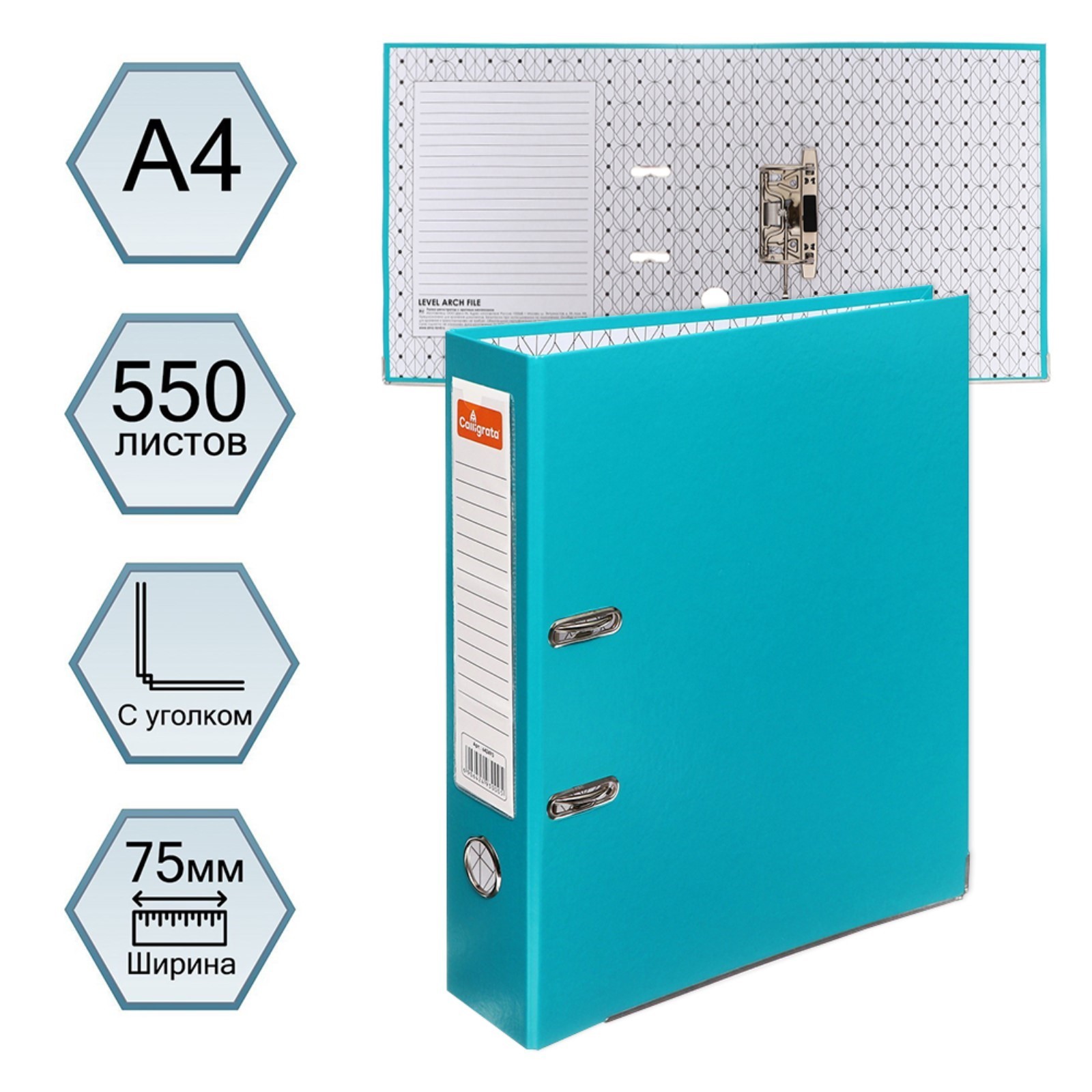 Папка-регистратор а4, 75 мм, Calligrata, пвх, металлическая окантовка, карман на корешок, собранная, бирюзовая