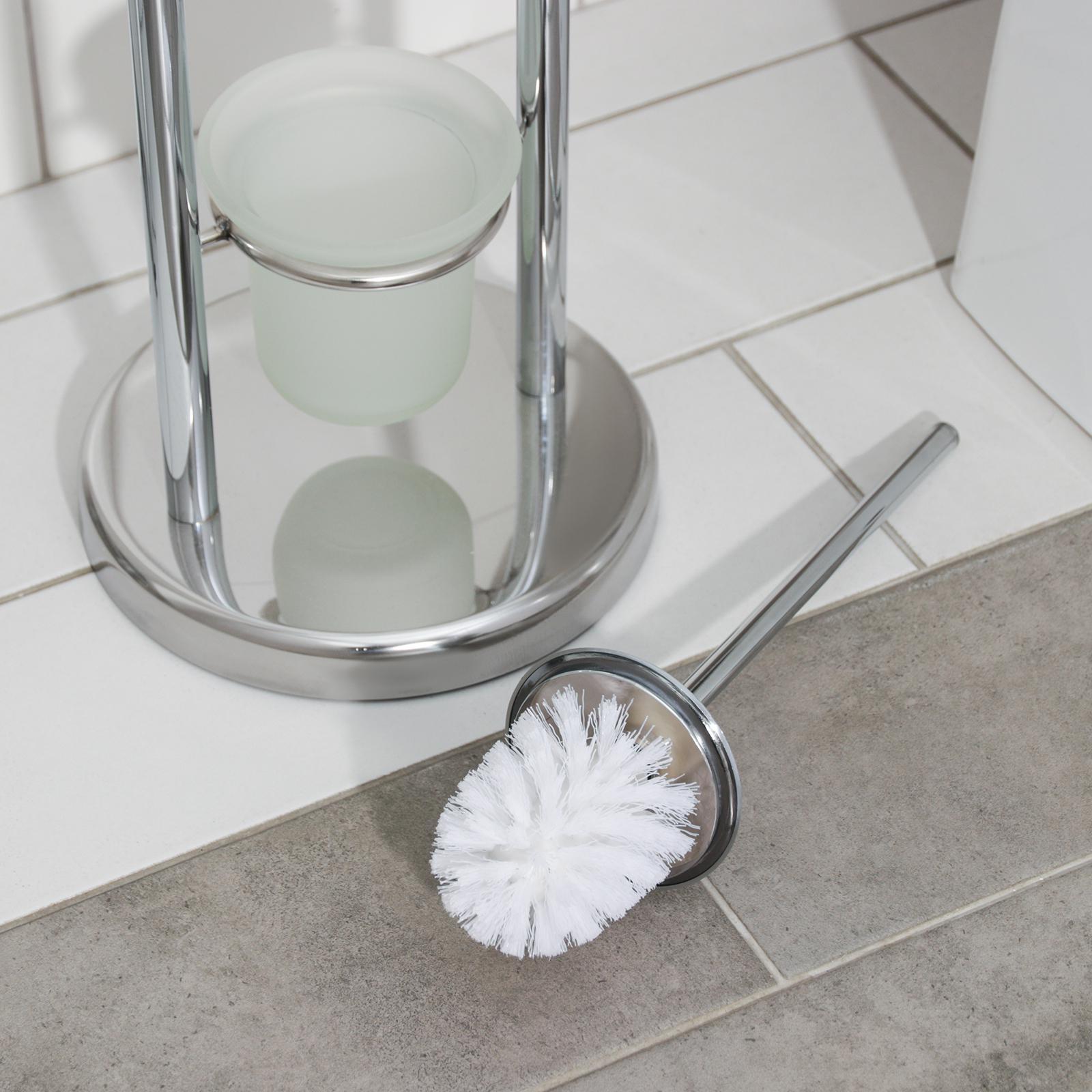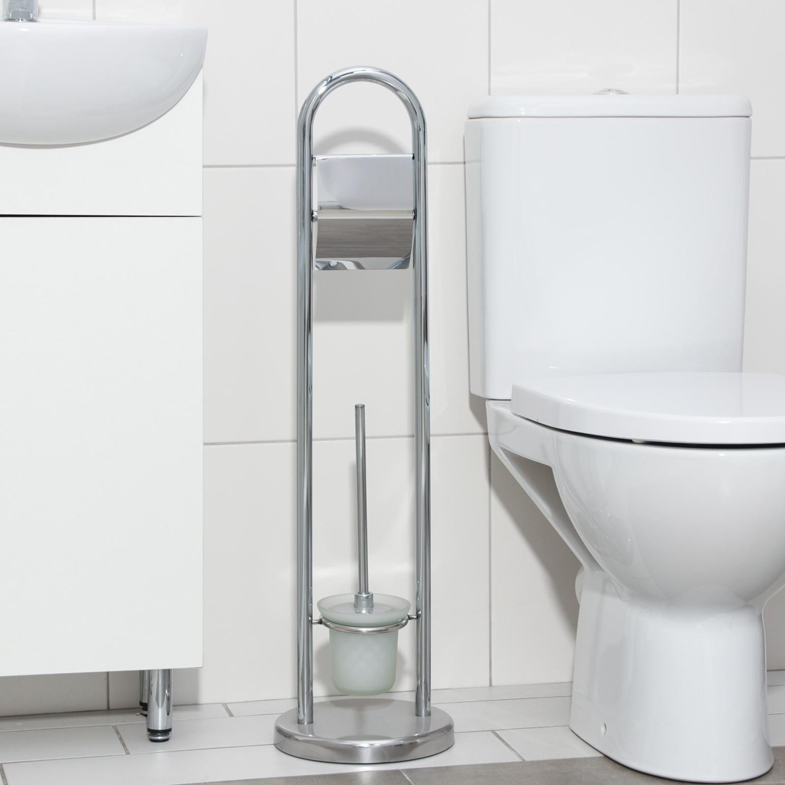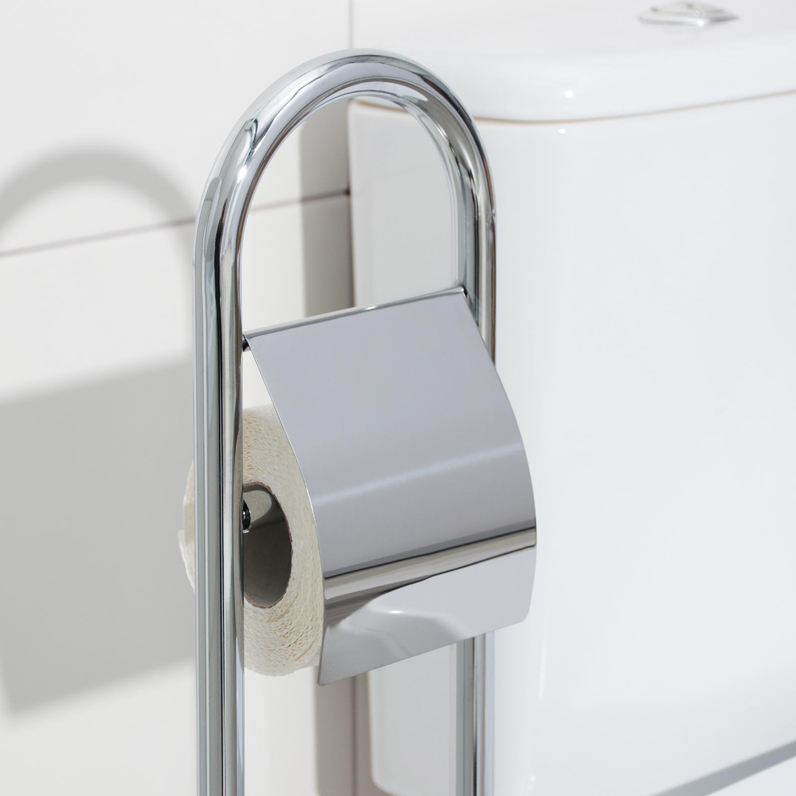 Ёршик для унитаза с подставкой напольный, 22x22x82 см, с держателем для туалетной бумаги, цвет хром