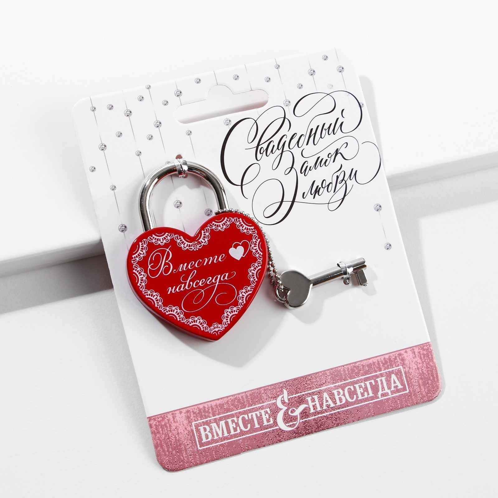 Замок свадебный с ключом «вместе навсегда».. Замок для торжественной свадебной традиции - это символ любви. Навесной замок любви на свадьбе становится символом нерушимого союза, заключенного влюбленными в этот день. По традиции замок вешается на мост, загадывается желание о счастливой семейной жизни, а ключи от него выбрасываются в реку, через левое плечо. Это делается для того, чтобы никто никогда не смог открыть этот замок и нарушить клятву, данную влюбленными. Свадебный замок можно повесить на мост по традиции или на дерево в специалных парках или аллеях молодожен, которые есть во многих городах. Замок навесной свадебный имеет в комплекте ключик, замок закрывается и открывается. Традиция закрывать замок на свадьбу объединяет сердца мужа и жены навсегда. Свадебный декоративный замочек будет отлично смотреться на фотосессии и видео. Цвет:Красный|Тематика праздника:Свадьба|Адресат:Молодожёнам|Материал:Металл|Наличие ключа:Да|Возможность гравировки:Да|Страна:Китай  развернуть описание ▼