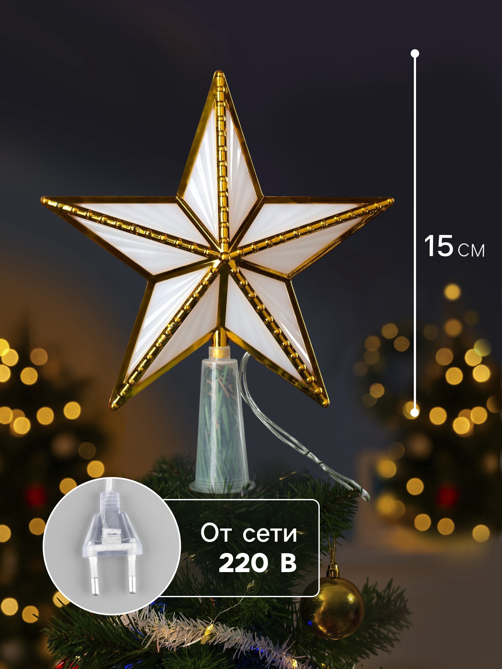 Светодиодная верхушка на ёлку «звезда золотистая», 15 см, 10 Led, 220 в, свечение мульти