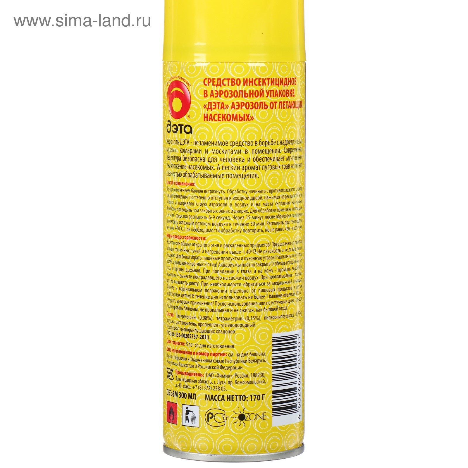 Аэрозоль инсектицидный от комаров и мух "дэта", 300 мл. Вид средства: Аэрозоль Назначение: Универсальное Тип средства: Репеллент