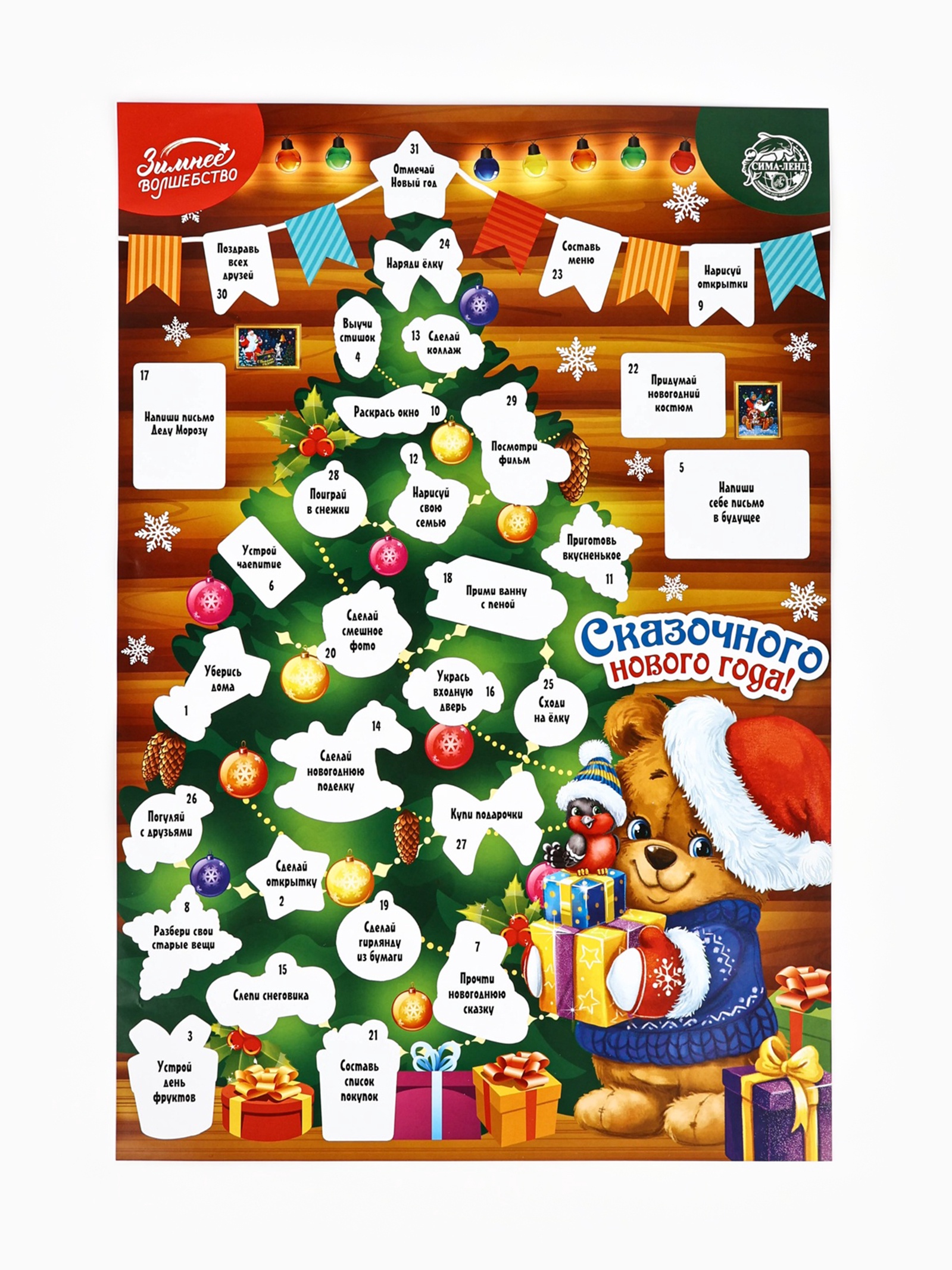 Адвент календарь новогодний с наклейками «сказочного года», 30 42 см