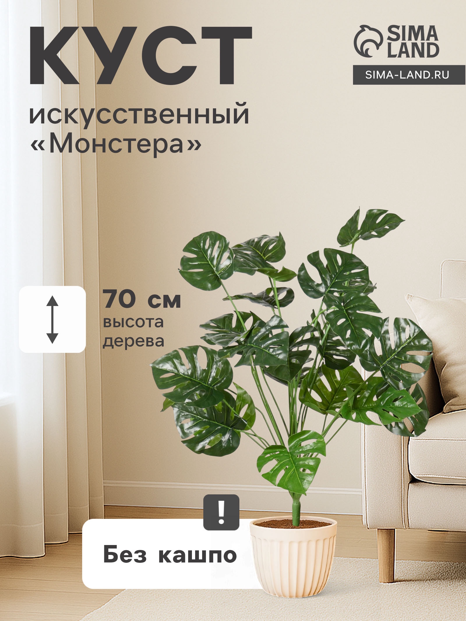 Куст искусственный «монстера», H=70 см