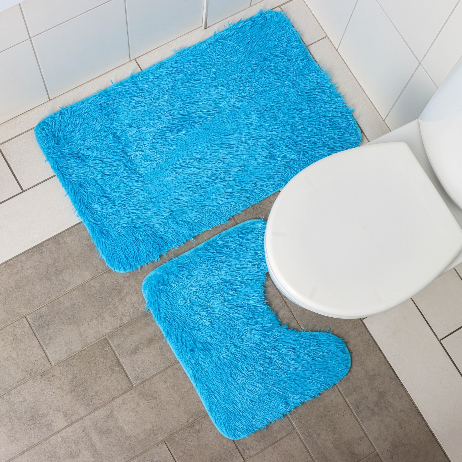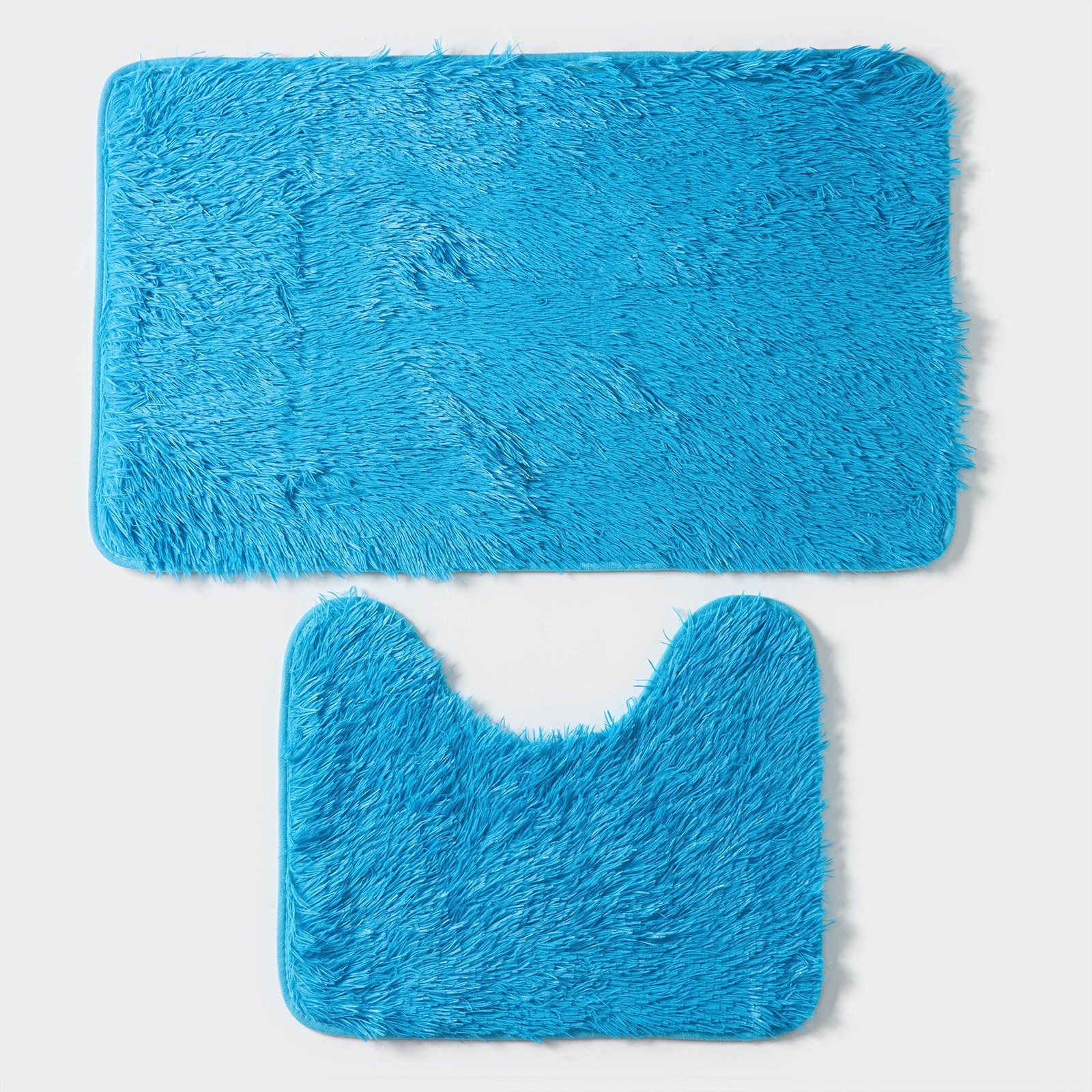 Набор ковриков для ванной и туалета доляна «пушистик», 2 шт, 40x50, 50x80 см цвет голубой