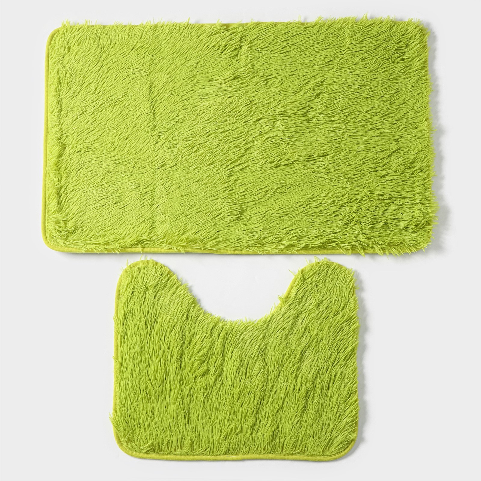Набор ковриков для ванной и туалета доляна «пушистик», 2 шт, 40x50 см, 50x80 см, цвет зелёный