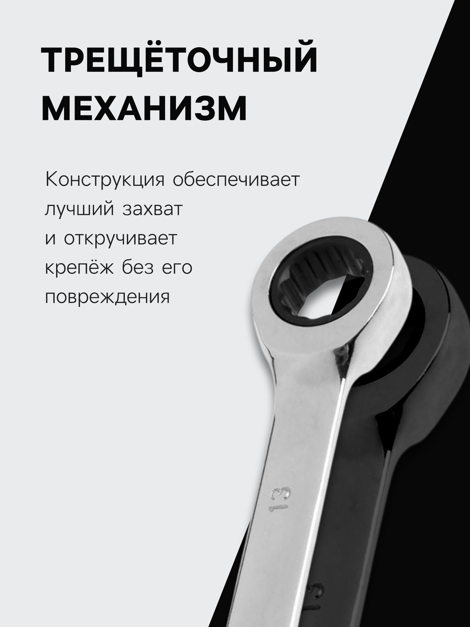 Ключ комбинированный трещоточный тундра, Crv, полированный, 72 зуба, 13 мм