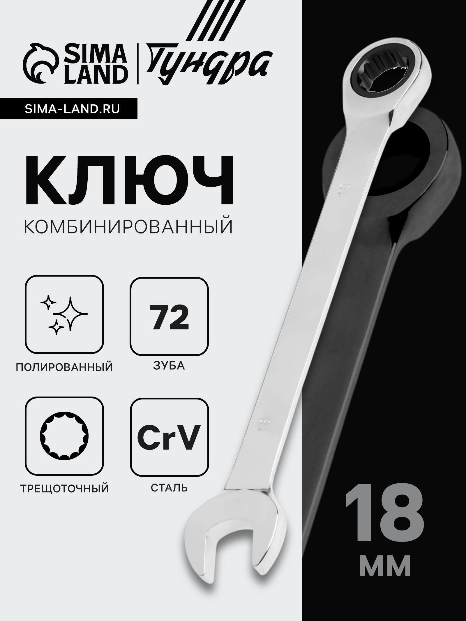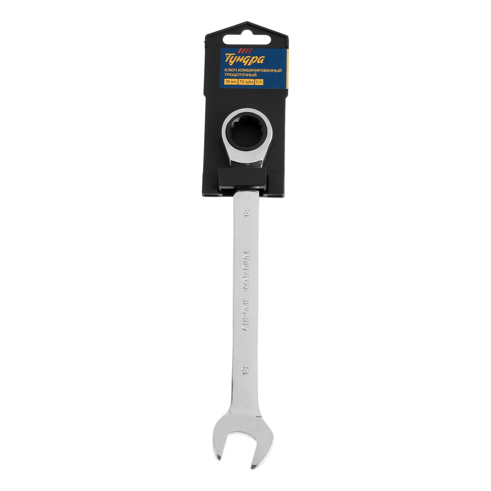 Ключ комбинированный трещоточный тундра, Crv, полированный, 72 зуба, 18 мм