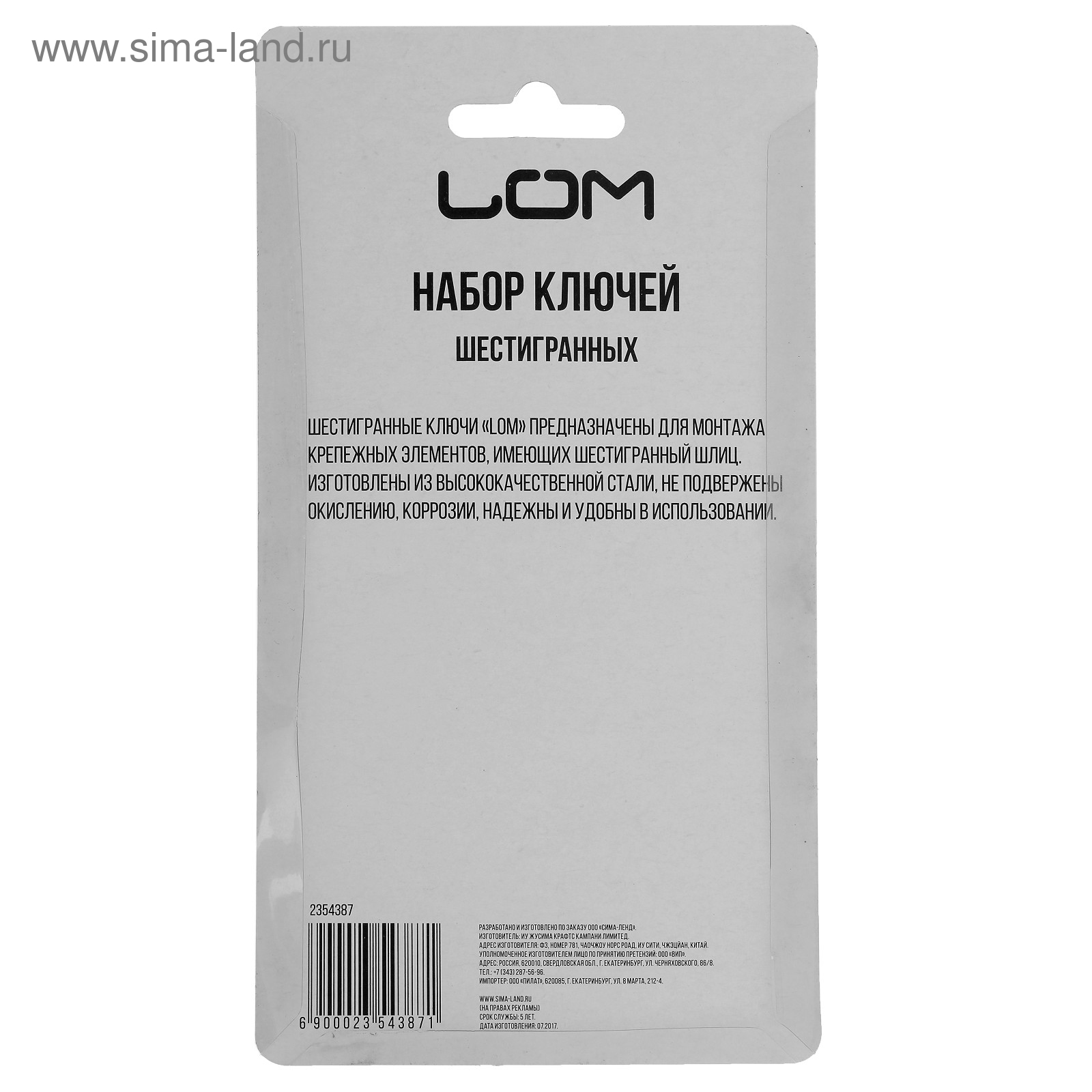 Набор ключей шестигранных лом, 1.5 - 10 мм, 9 шт.