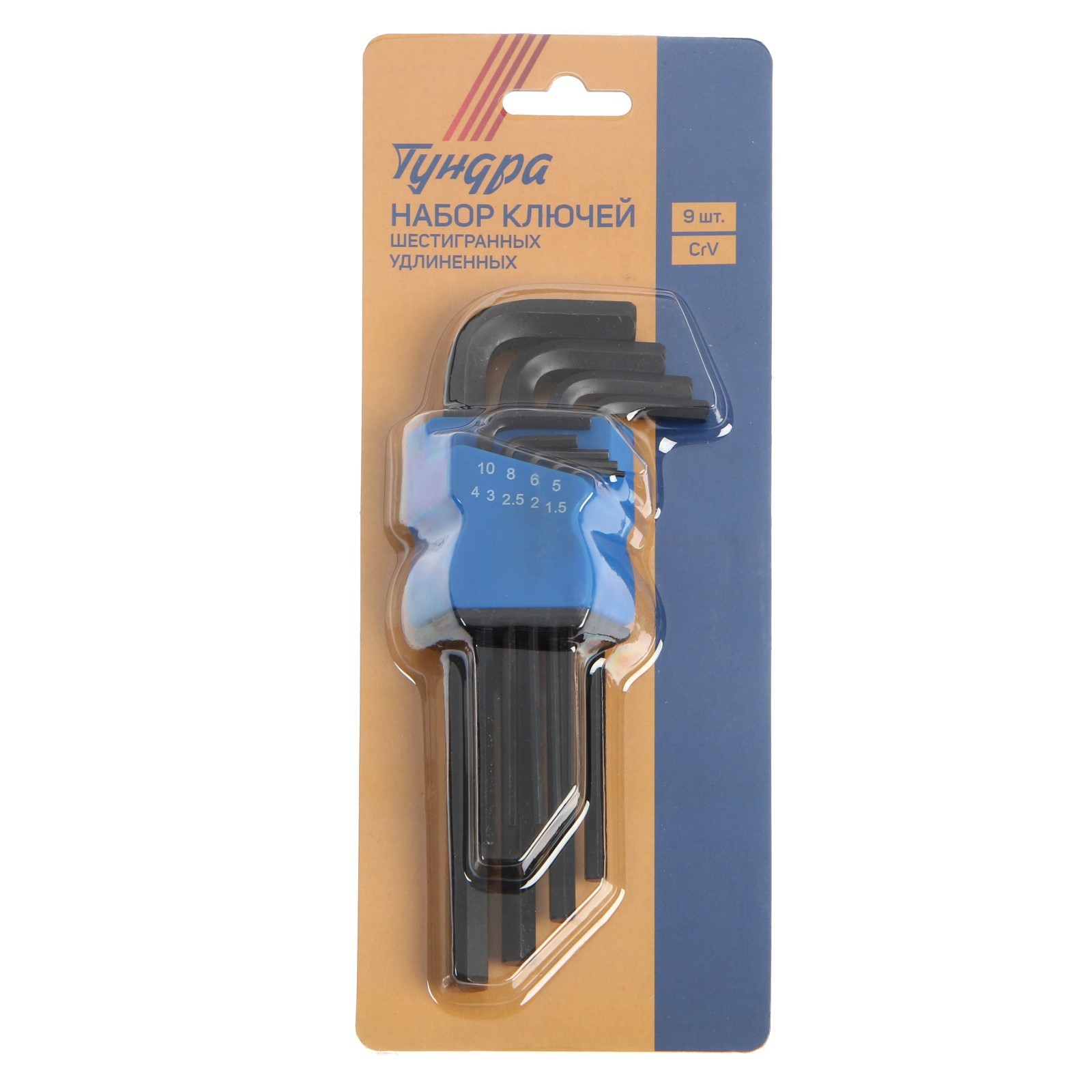 Набор ключей шестигранных тундра Black, удлиненных, Crv, 1.5 - 10 мм, 9 шт.