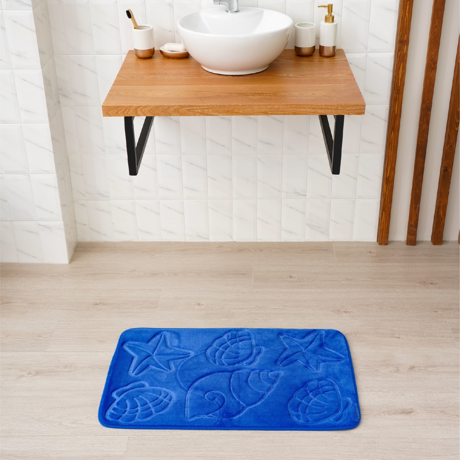 Набор ковриков для ванной и туалета доляна «ракушки», объёмные, 2 шт, 40x50 см, 50x80 см, цвет синий
