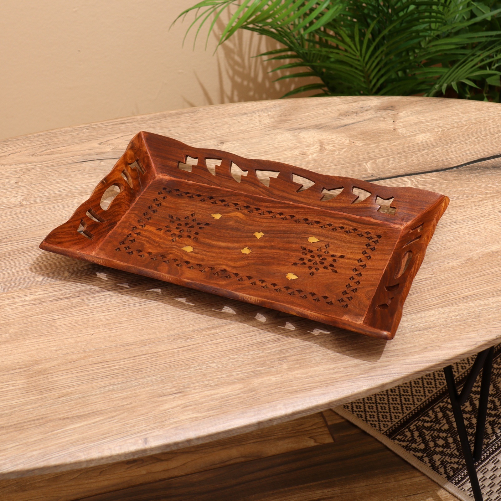 Поднос дерево "резной" 25х37х4 см микс