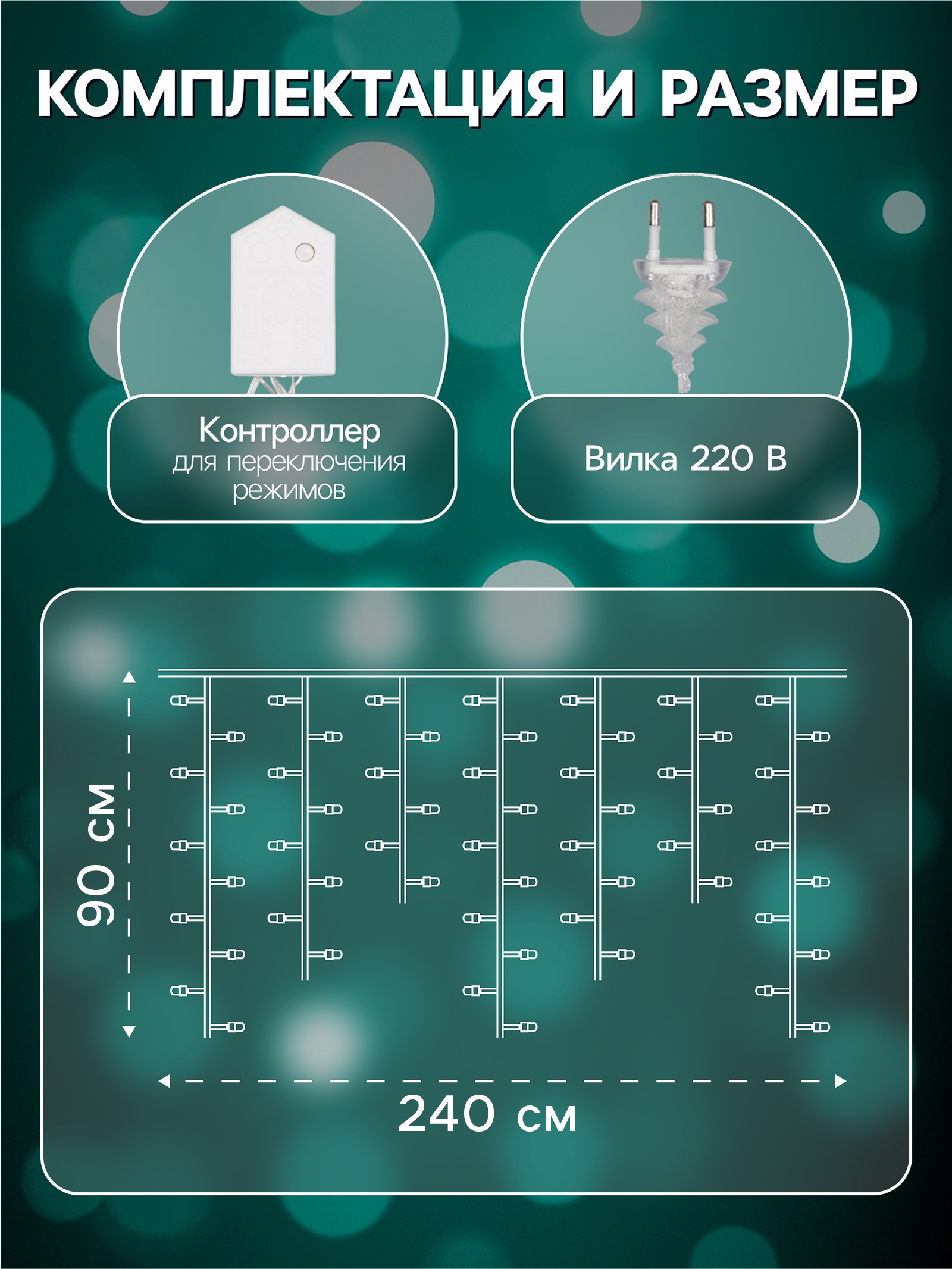 Гирлянда «бахрома» 2.4 0.9 м с насадками «олень», Ip20, прозрачная нить, 138 Led, свечение мульти, 8 режимов, 220 в