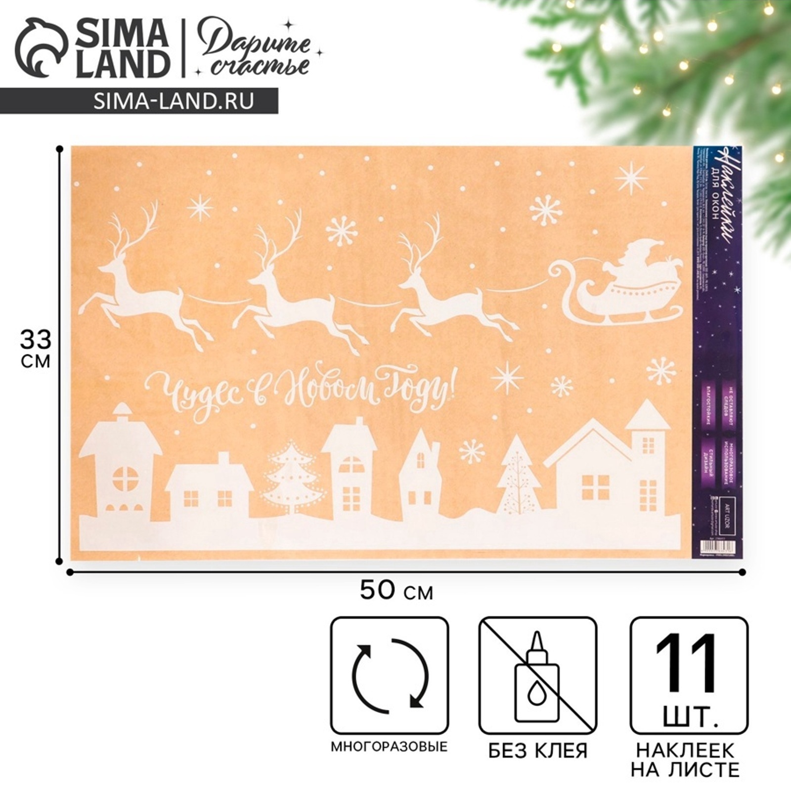 Наклейки на окна многоразовые «чудес в новом году», 33 х 50 см
