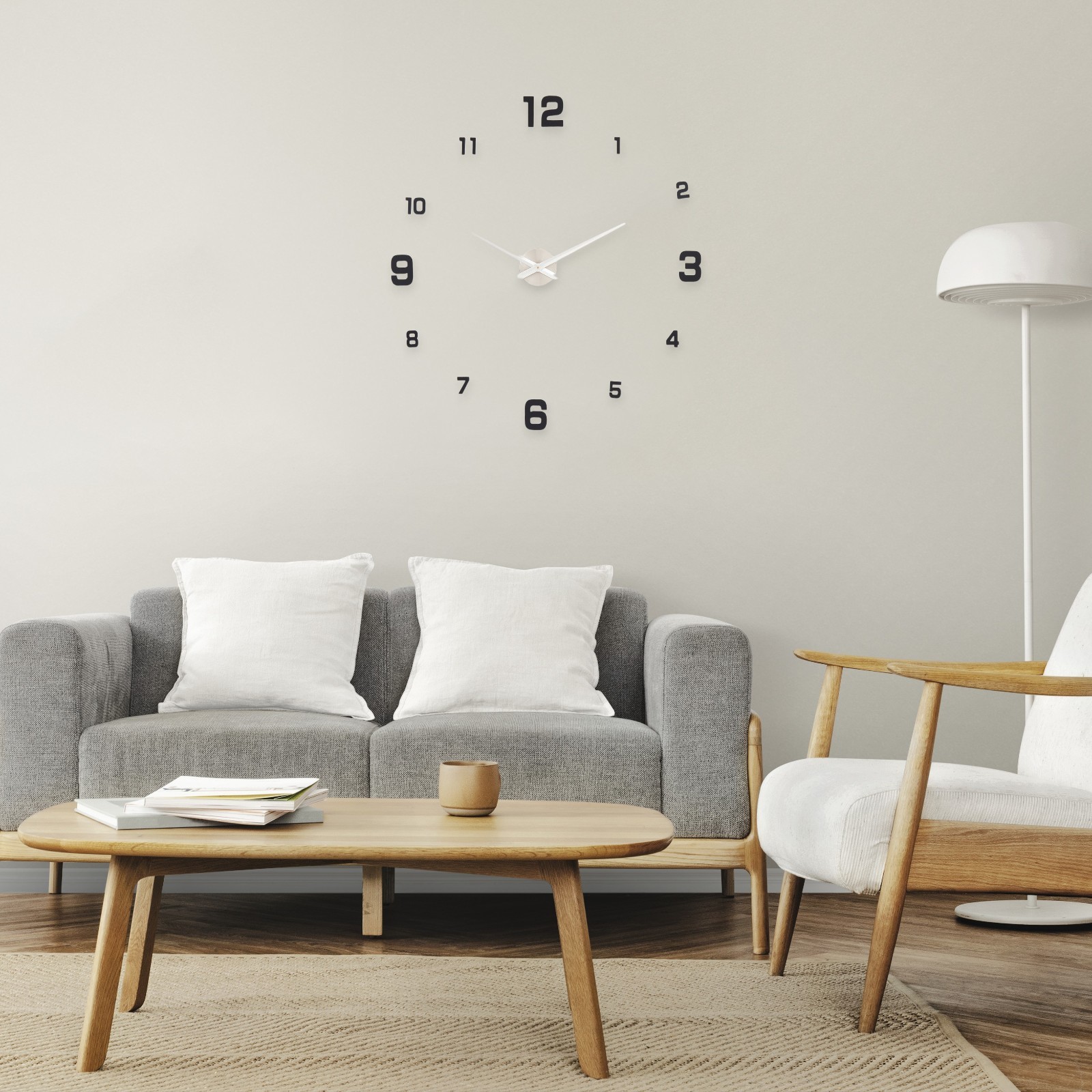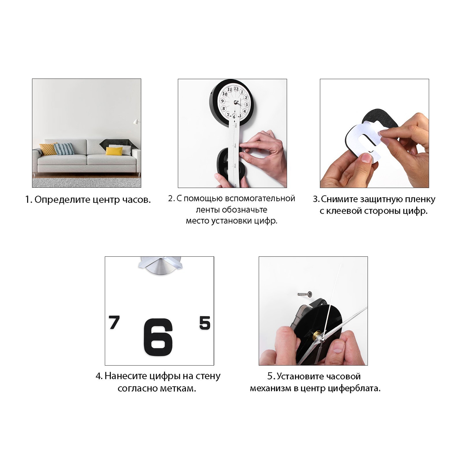 Часы настенные интерьерные, 3d эндерлин, наклейка, большие, d-120 см. Оригинальные часы-наклейка имеют липкий слой, который позволяет разместить их на любой поверхности: обоях, дереве, пластике, керамике или металле. В комплект входит шаблон. С его помощью вы выберете нужный диаметр часов и сделаете отметки на стене, чтобы приклеить элементы. Характеристики Длина минутной стрелки: 39 см.Длина часовой стрелки: 31 см.Стрелки выполнены из сплава алюминия.Рекомендуемый диаметр: 120 120 см.Для работы необходима 1 АА батарейка, нет в комплекте.Цвет:Чёрный|Ширина, см:120|Высота, см:120|Тематика:Интерьер|Тип индикации:Арабские цифры|Тип механизма:Кварцевый|Материал:Металл|Материал:Акрил|3D:Да|Ход стрелок:Плавный|Бесшумные:Да|Страна:Китай  развернуть описание ▼