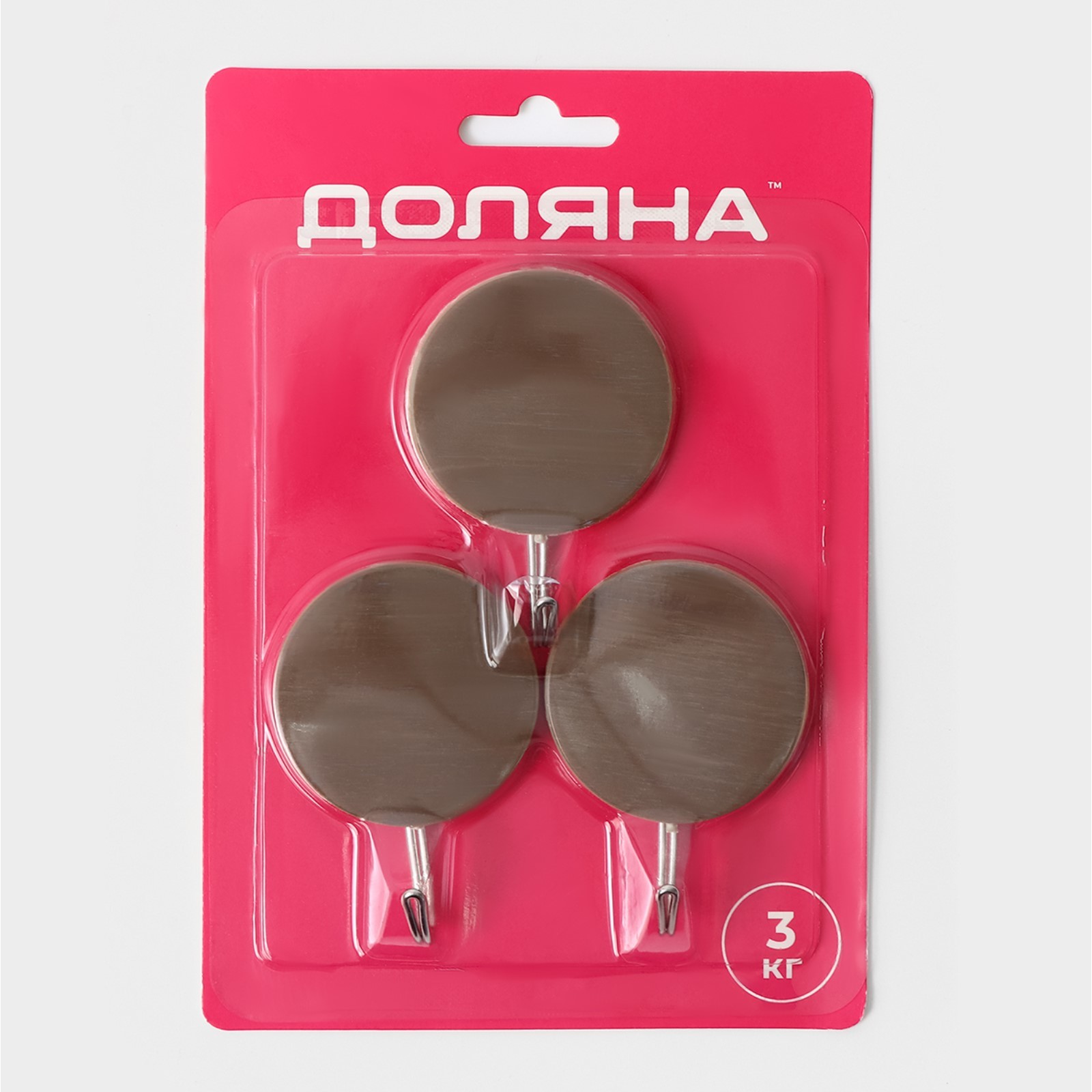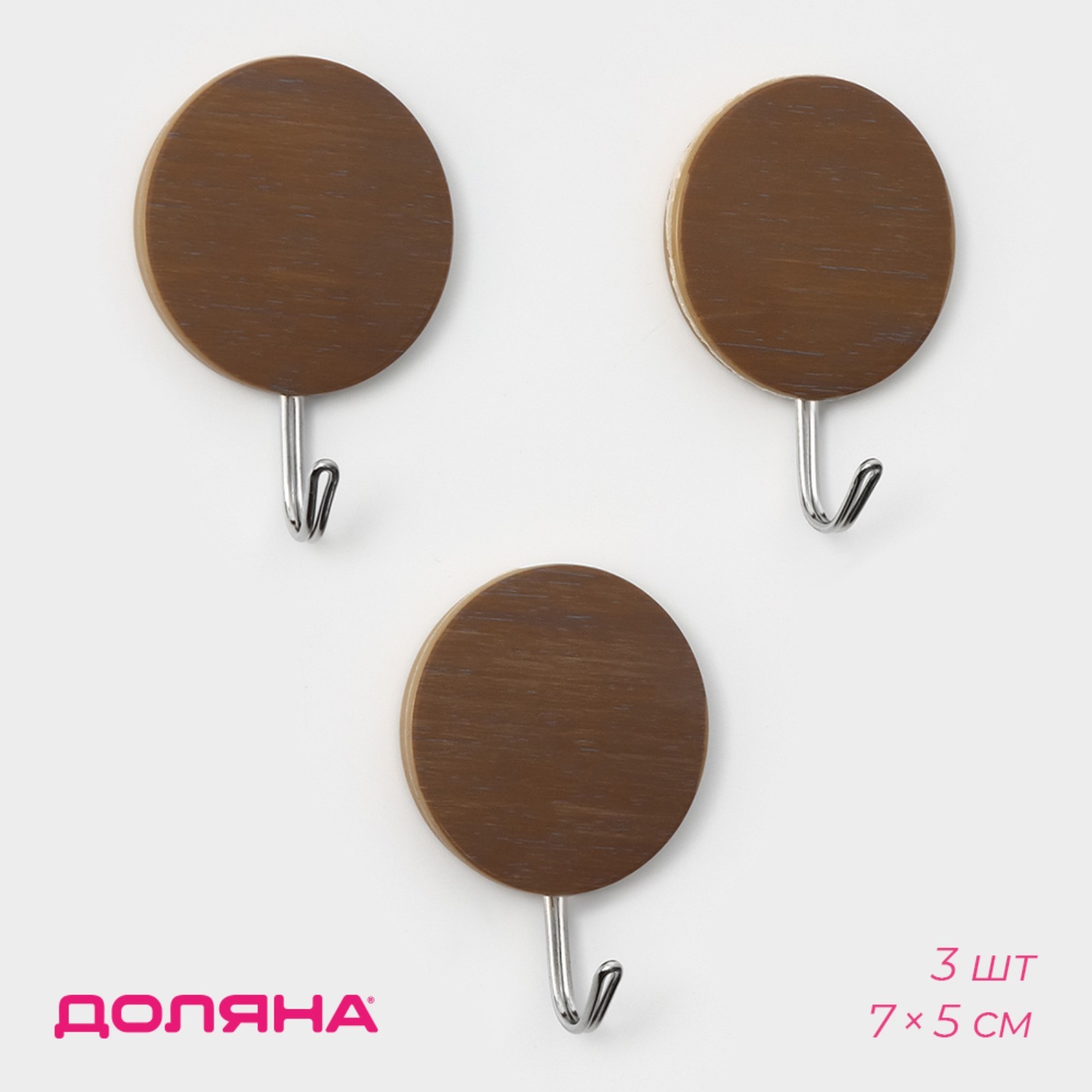 Крючки самоклеящиеся доляна «деревянные круги», 3 шт, цвет коричневый