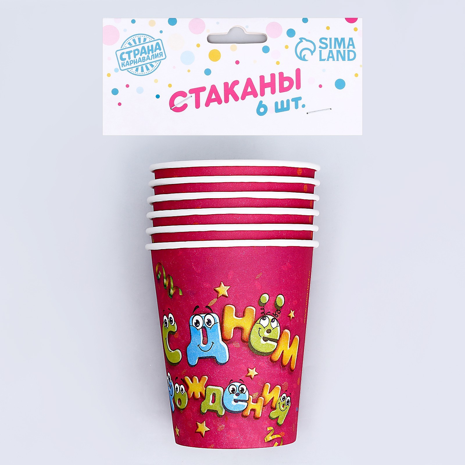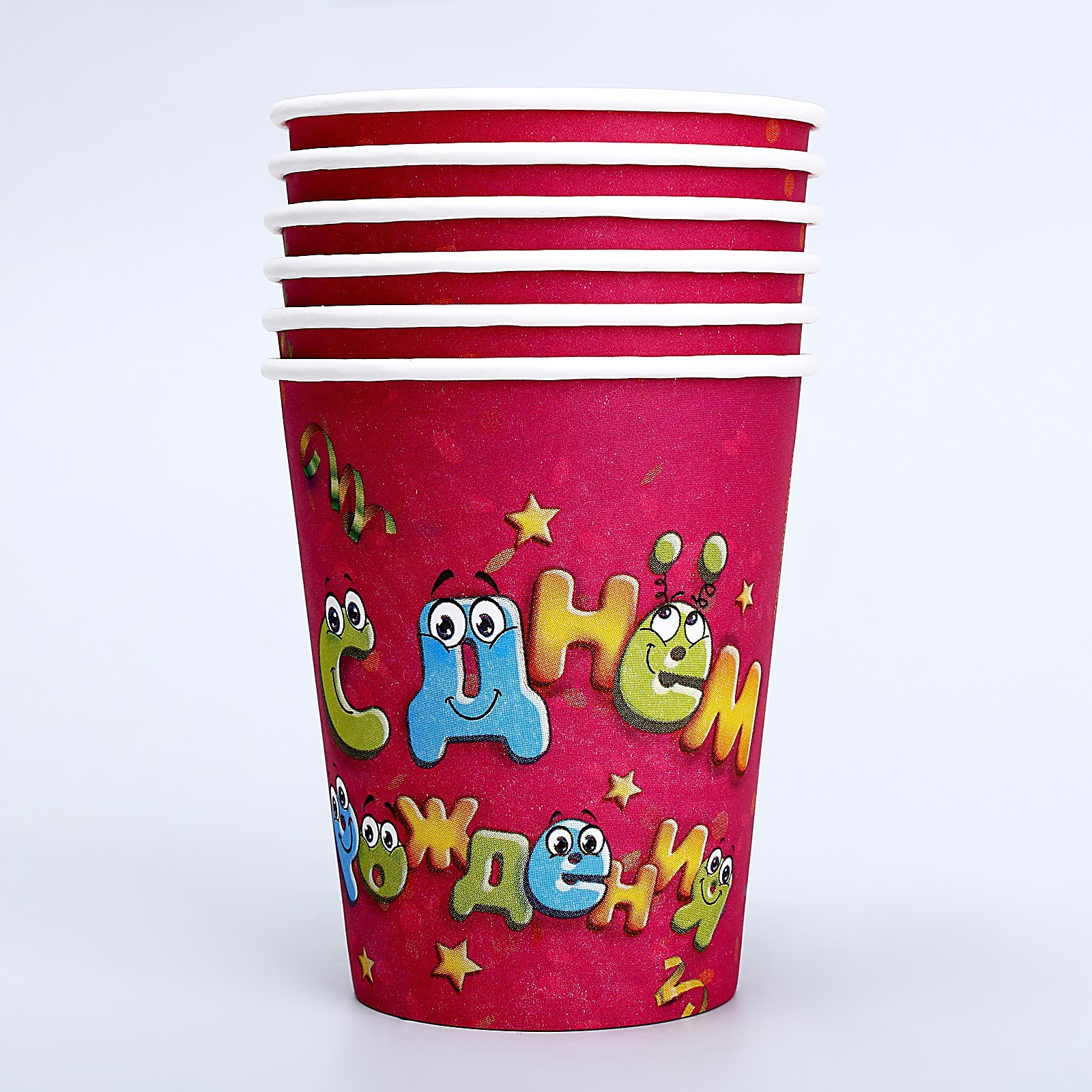 Стакан одноразовый бумажный "с днем рождения" мордашки, 250 мл. (набор 6 шт)
