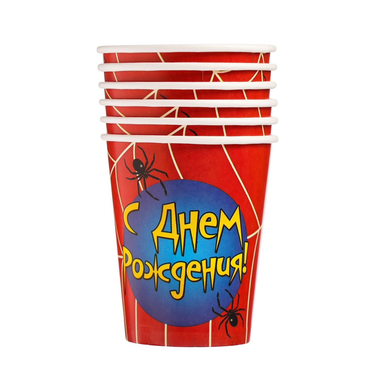 Стакан одноразовый бумажный "с днем рождения" паутинка, 250 мл. (набор 6 шт)