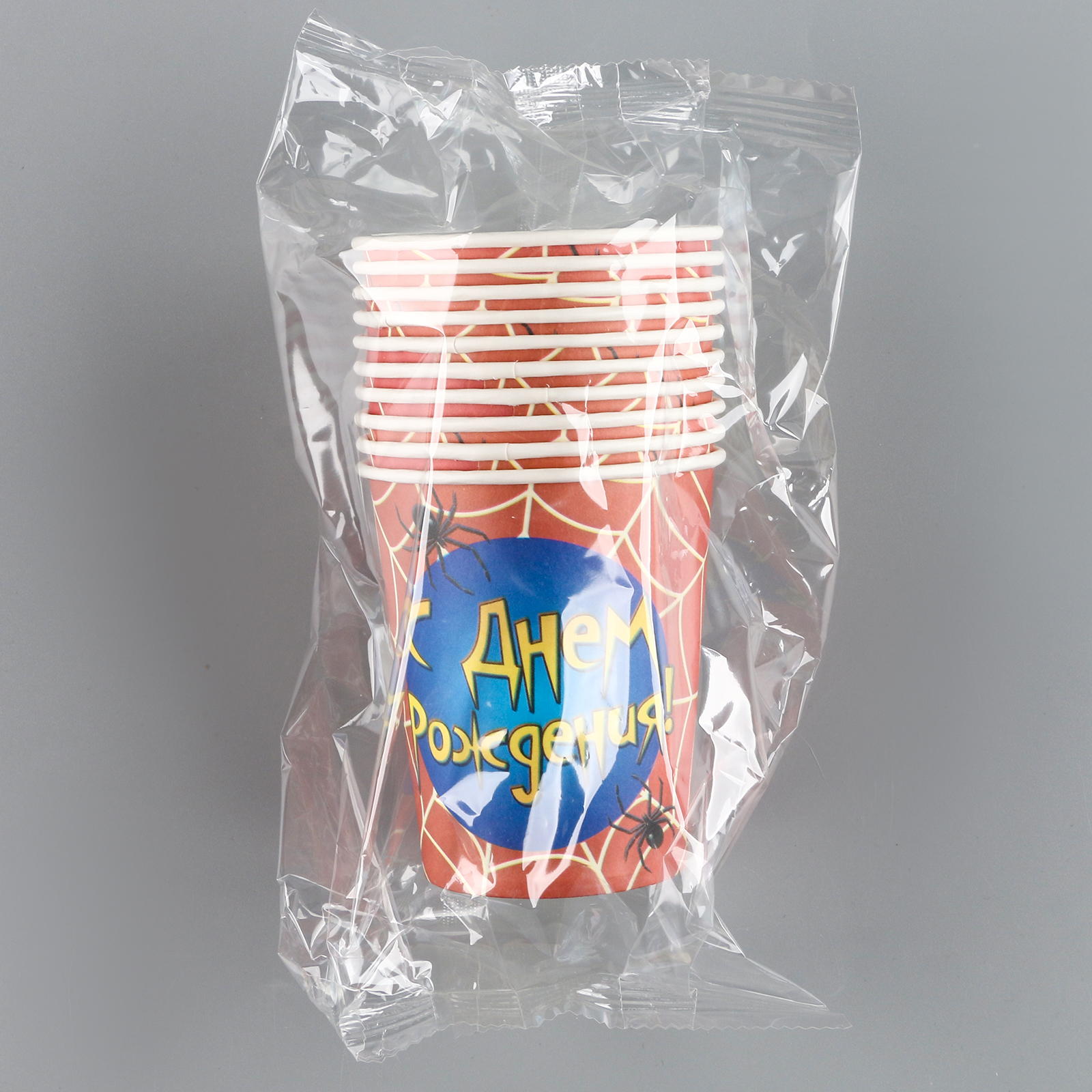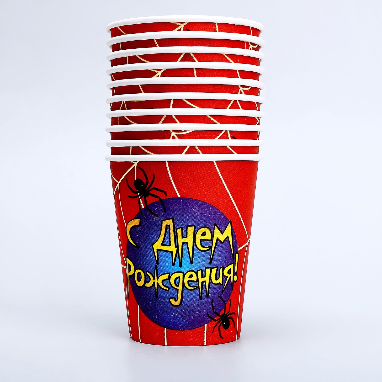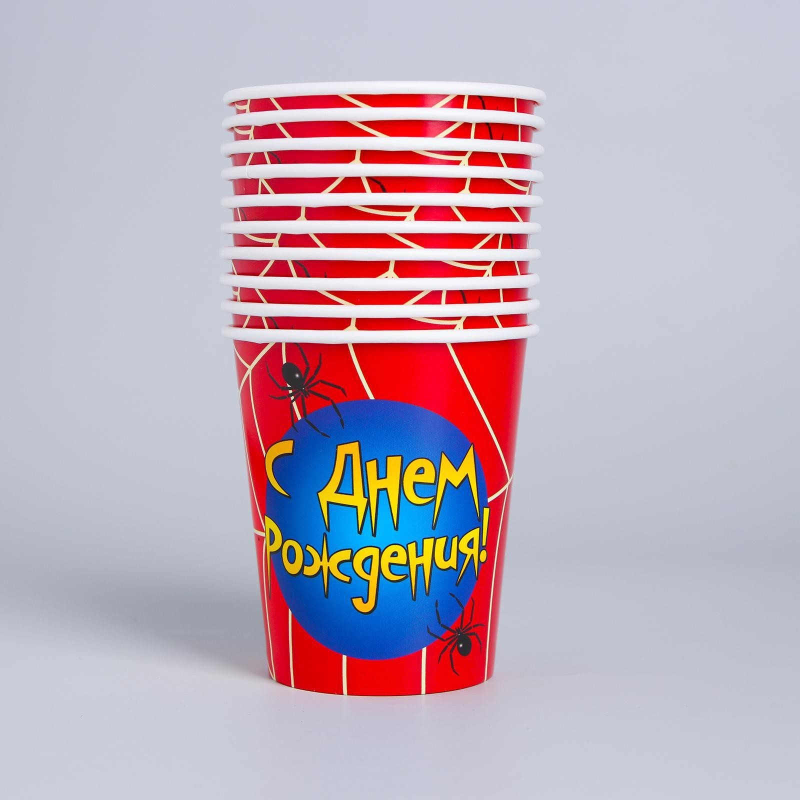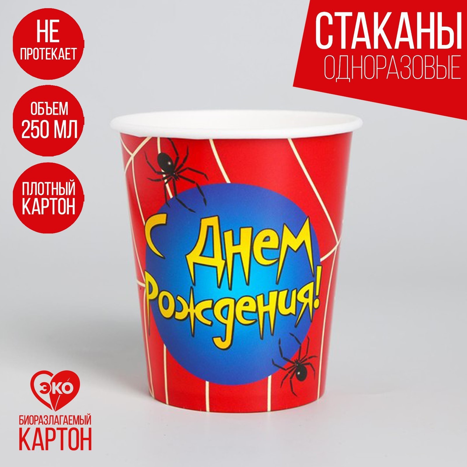 Стакан одноразовый бумажный "с днем рождения" паутинка, 250 мл.
