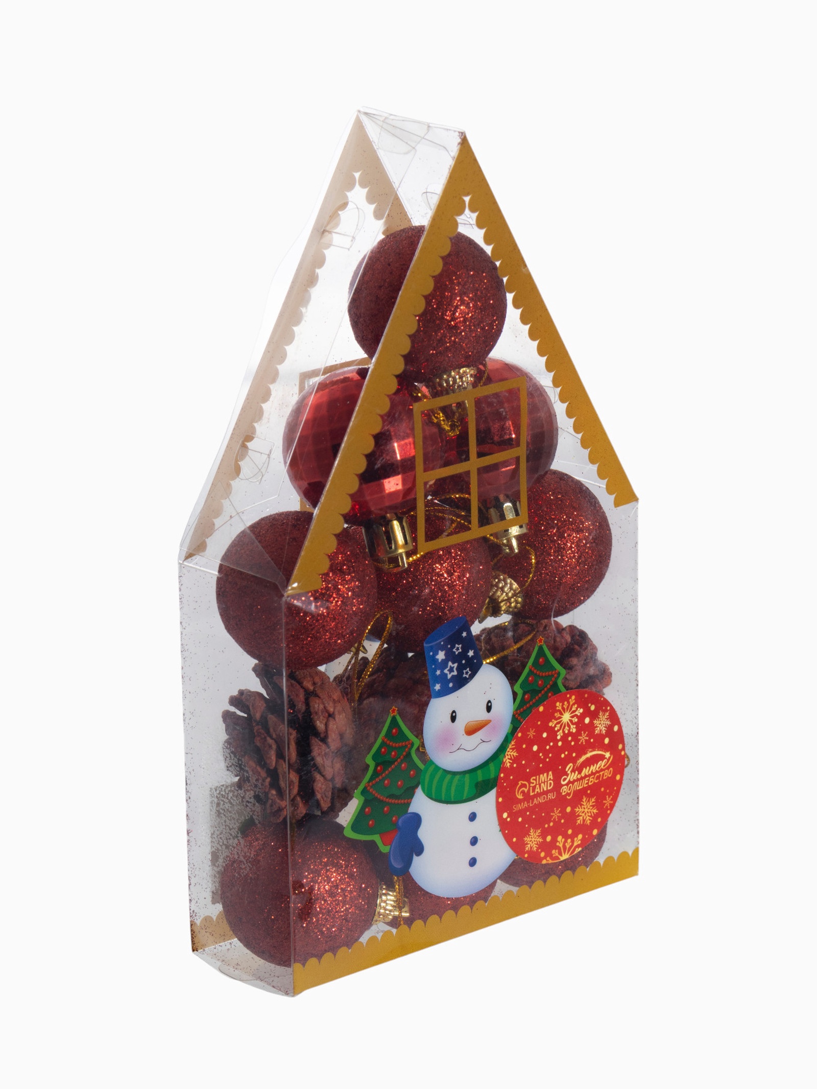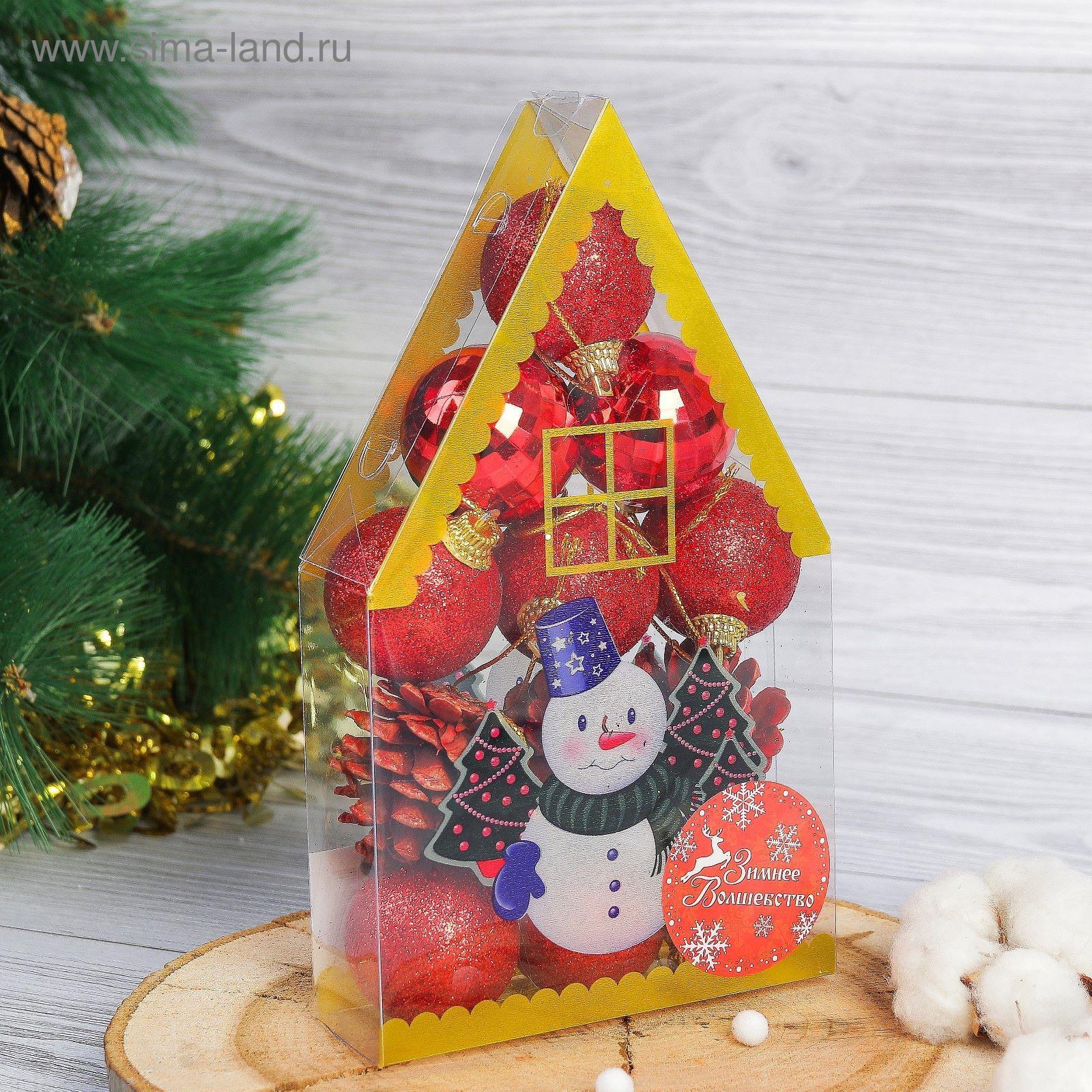 Ёлочные игрушки «зимний лес», шары новогодние, набор 12 шт. (9 шаров,3 шишки), красный