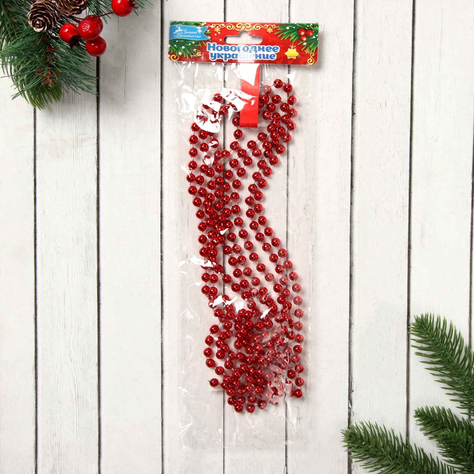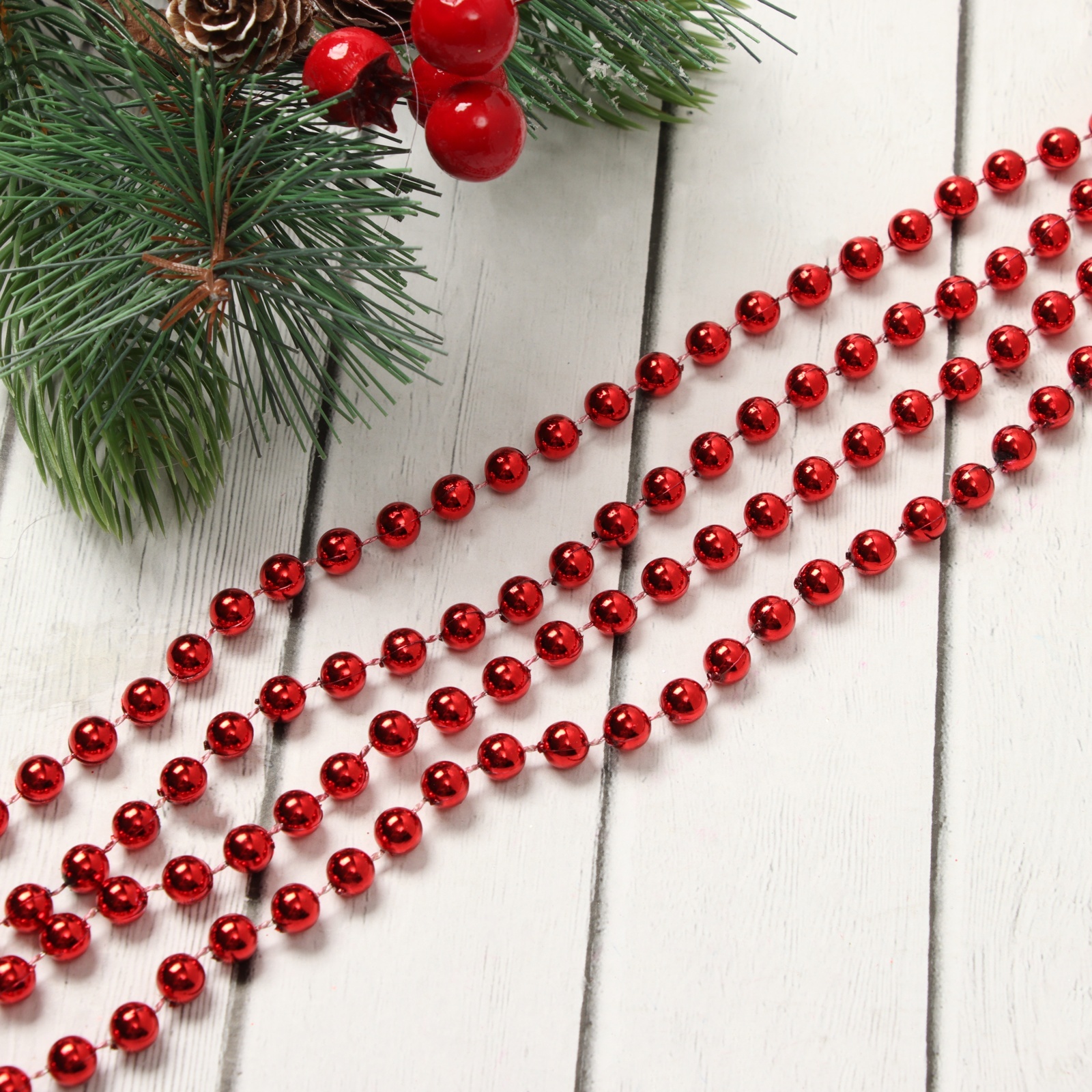 Бусы на ёлку «шар», длина 2.7 м, D=7 мм, красные